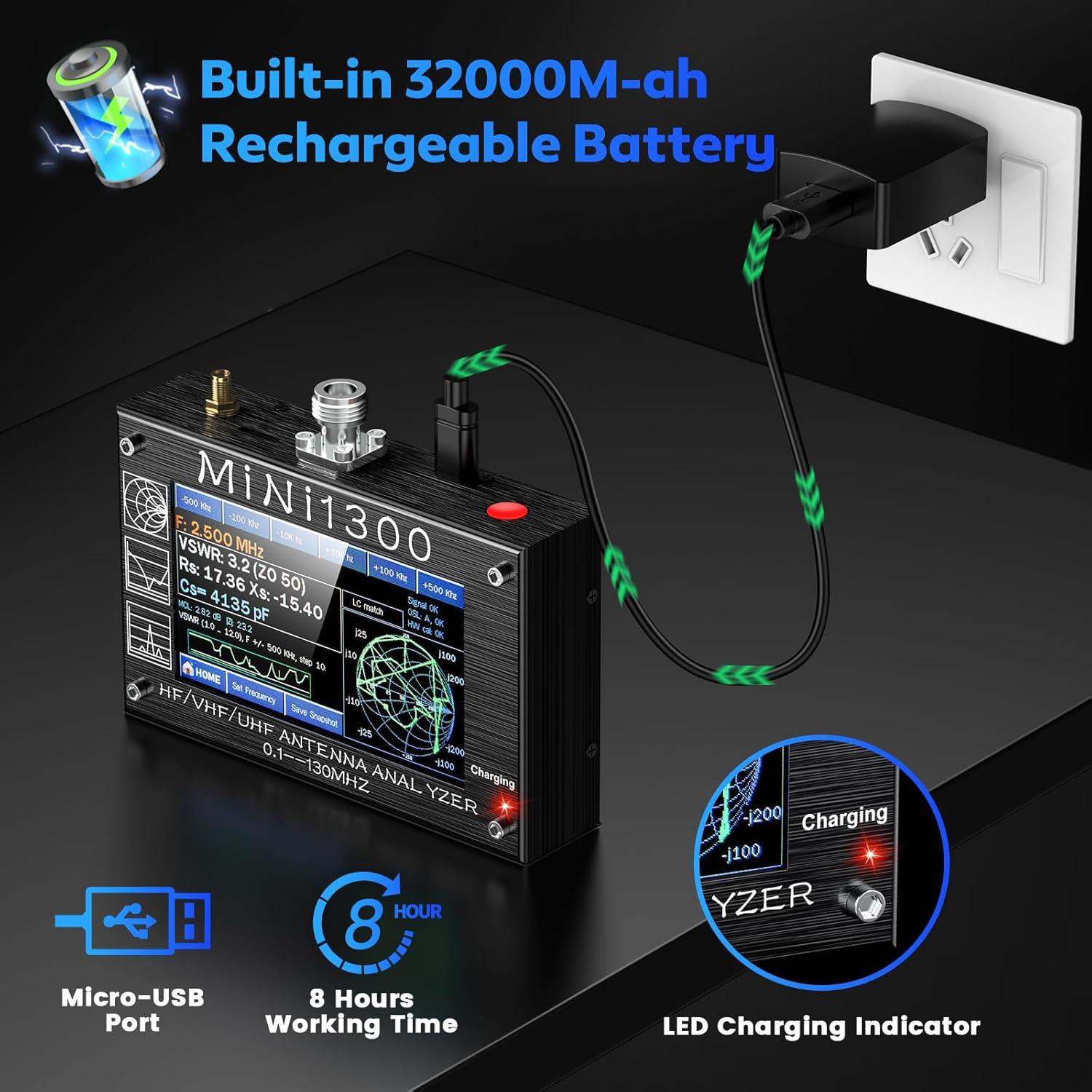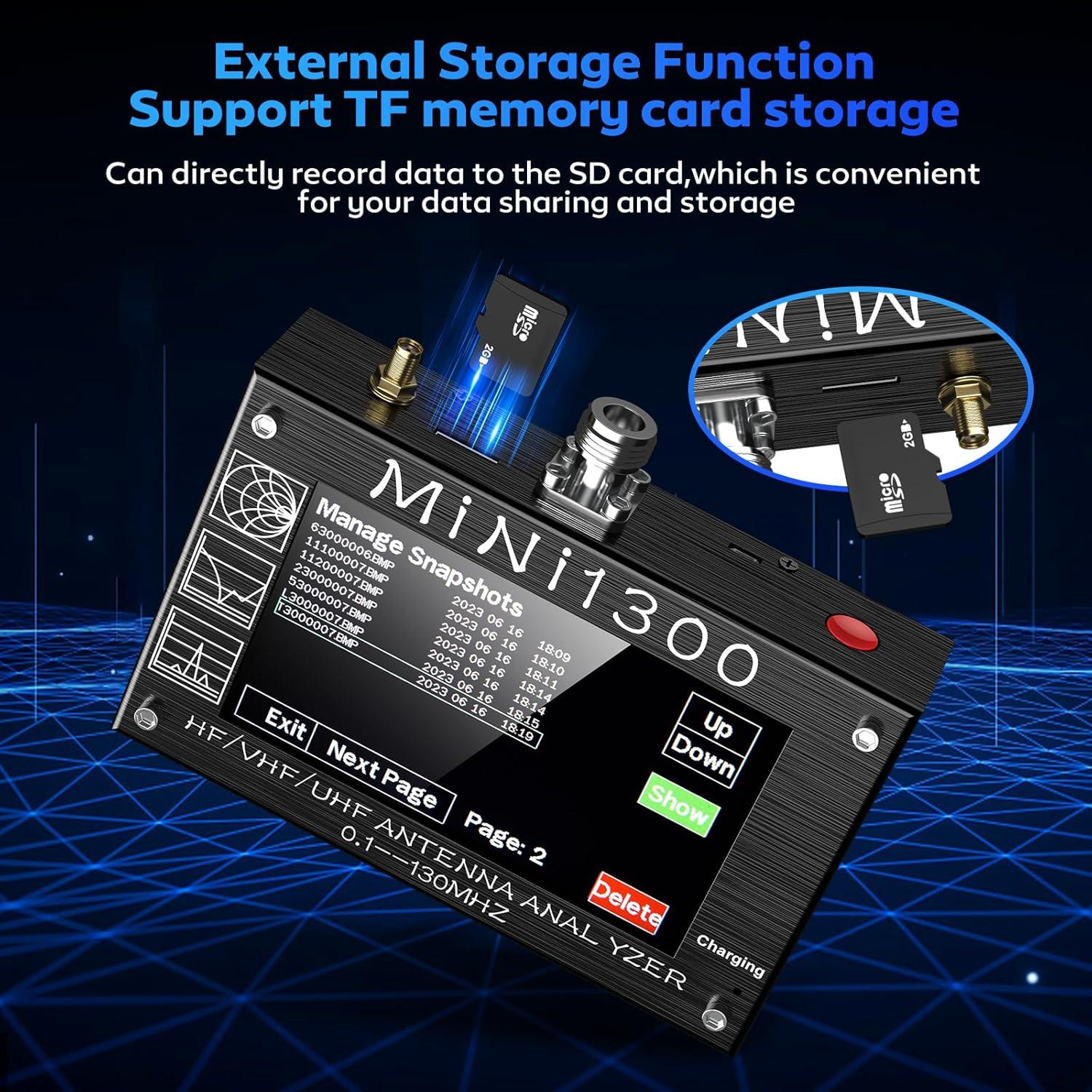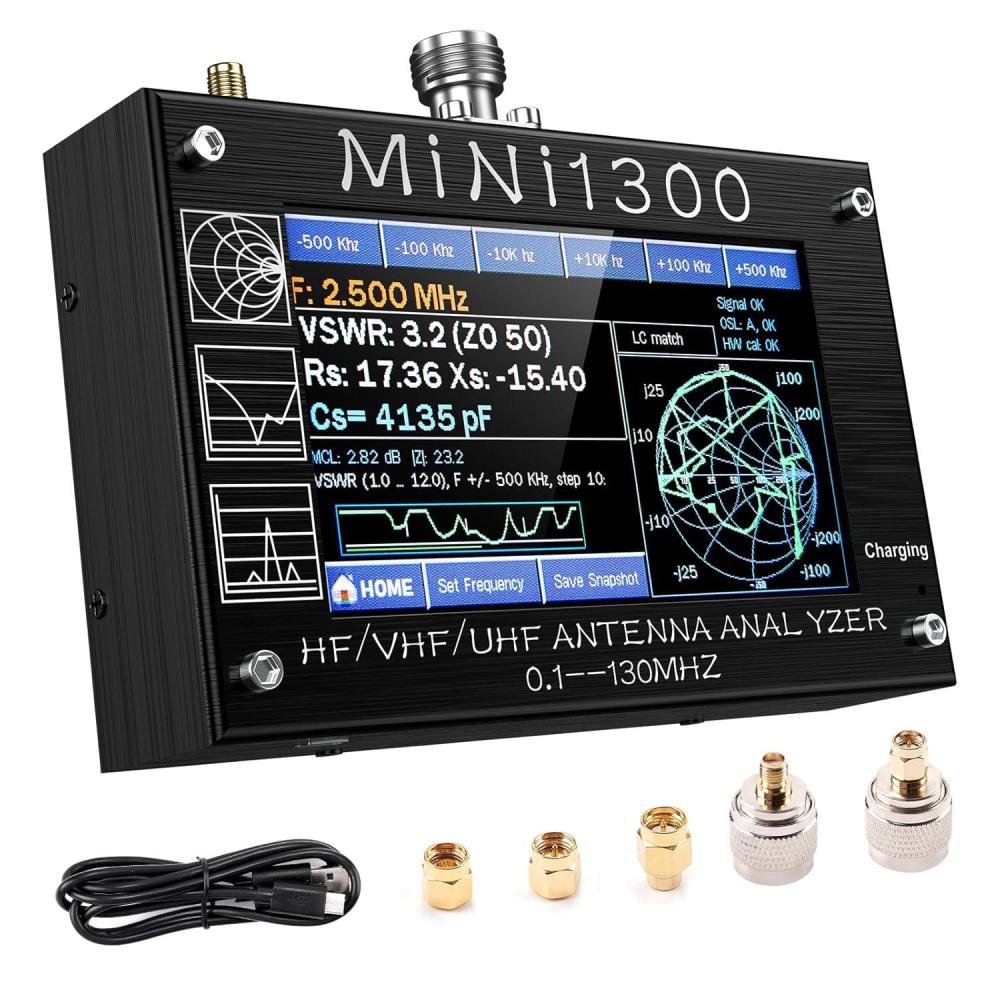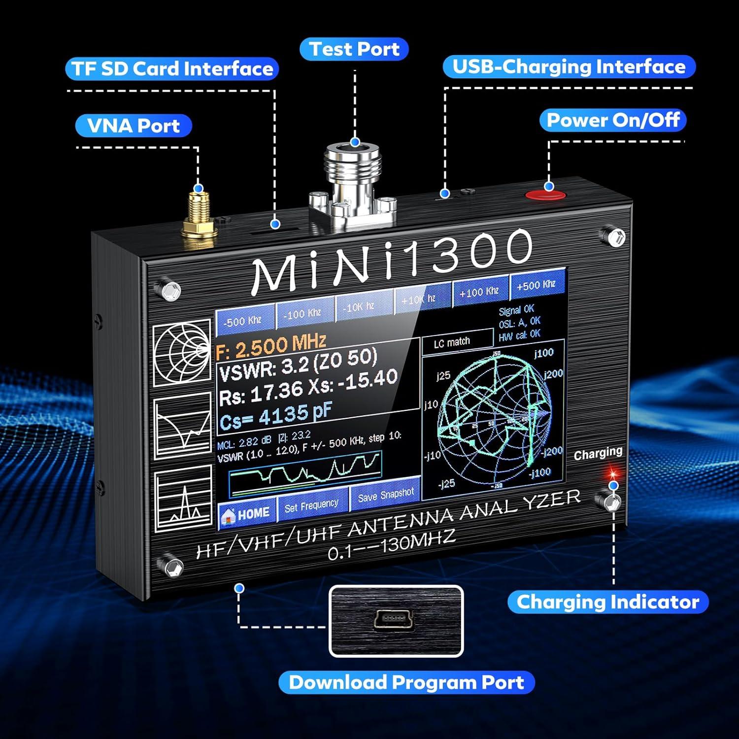 2023 Upgraded Antenna Analyzer : The Mini1300 Antenna Analyzer features a larger resistive 4.3 inch touchscreen and widened frequency scan range MF/HF/VHF input for 0.1-1300MHz, can measure multi parameters. With SMA Open Short Load Calibration Kits , easy to Calibrate directly
