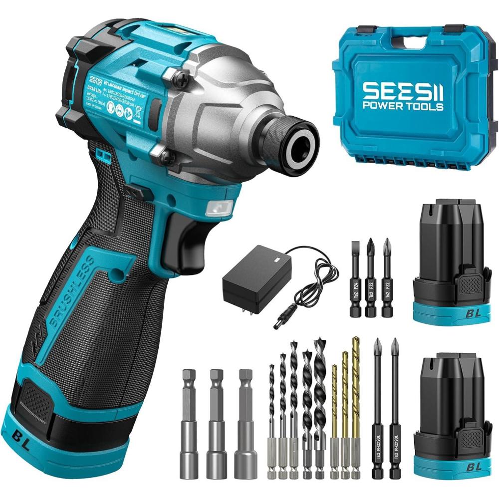 Complete Kit for Any Project: Includes 2×2000mAh lithium-ion batteries, fast charger, and premium accessories: 2× PH2 90mm impact bits, 1× 50mm multi-bit (PH2/SL4/PZ2), 1× magnetic socket set (1/4, 5/16, 3/8), 1× HSS twist drill set (4/5/6mm), and 1× woodworking drill set (4/5/6/8/10mm). Packed in a sturdy carrying bag for easy storage and transport—perfect for home improvement, woodworking, and on-site professional work