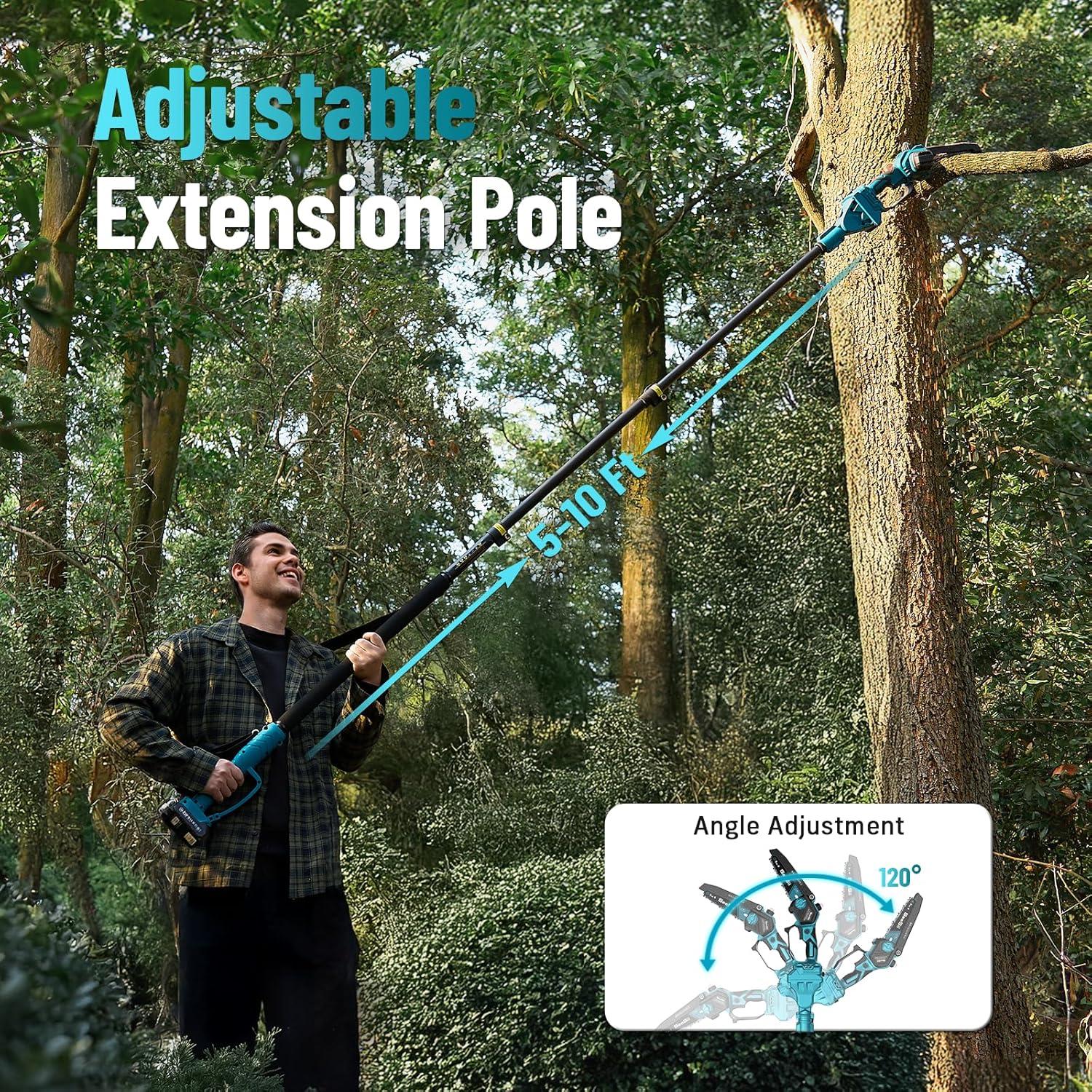 Reach New Heights Safely: The SEESII cordless pole saw extends from 4.6 to 9 feet, giving you a total reach of up to 16 feet when combined with your height. Trim tall tree branches and hard-to-access areas without balancing on ladders or risking your safety. This tree saw with pole eliminates the danger of traditional trimming methods while providing the extended reach you need for comprehensive yard maintenance