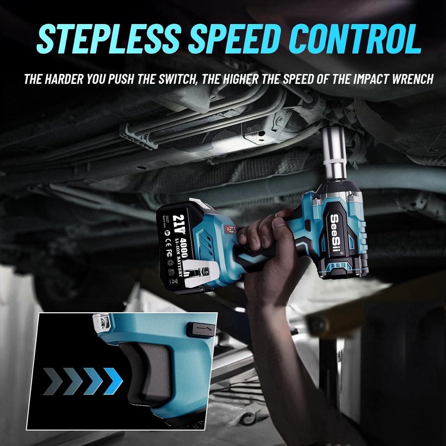 Elaborately Designed for Diverse Groups of User: Seesii has been dedicated to providing suitable battery-powered impact wrenches for different user groups. This Wrench Only Weight: 3.5 LBS. Lightweight and Ergonomically designed rubber grips not only make it more comfortable for professionals to use for long periods of time but also provide a perfect helper for the elderly, children, and women. So that every user can easily handle this impact wrench and fulfilled their work needs
