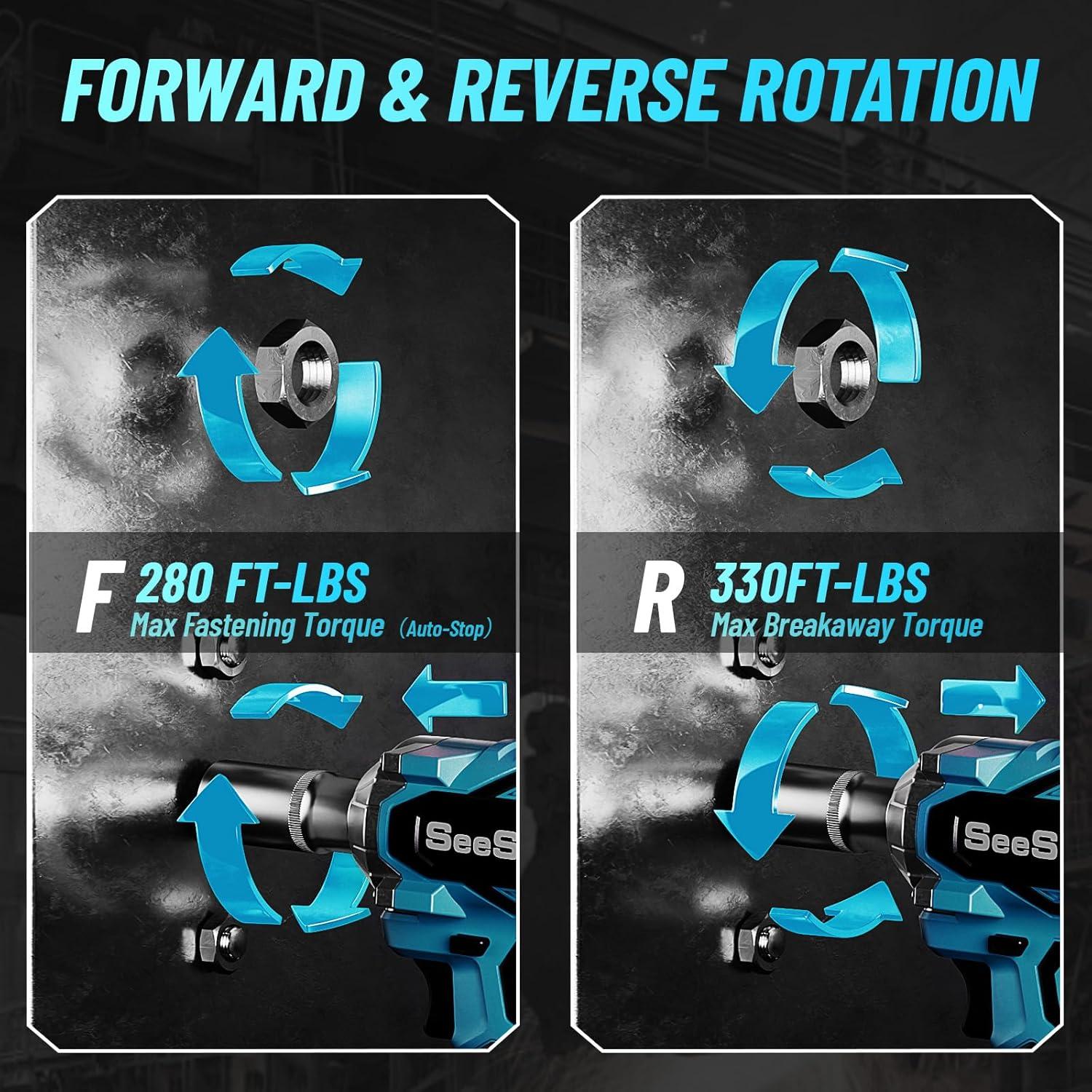 Two Directions and Brake-stop: This electic impact wrench can cooperate with locking protection, forward and reverse Mode. In reverse mode, once the nut or bolt is loosened, the brake stop device will activate and reduce speed and torque to protect the nut from flying away
