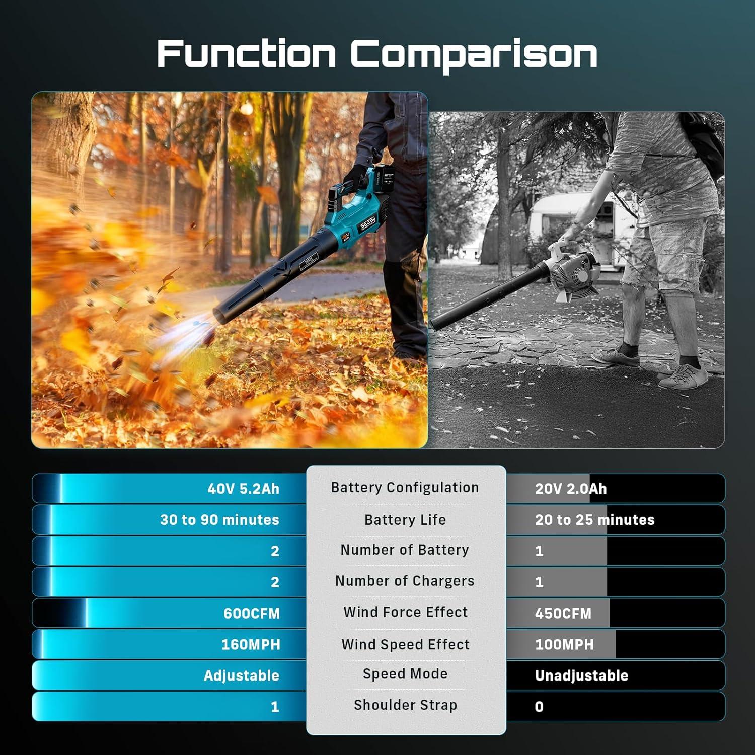 Efficient Clearing: SEESII 40V leaf blower cordless is designed with up to 600 CFM and wind speeds of 160 MPH, the brushless moter provides powerful airflow easily blows away heavy wet leaves, clears debris and dust from lawns, and even sweeps away small stones, making it ideal for tackling a wide range of outdoor cleaning tasks.