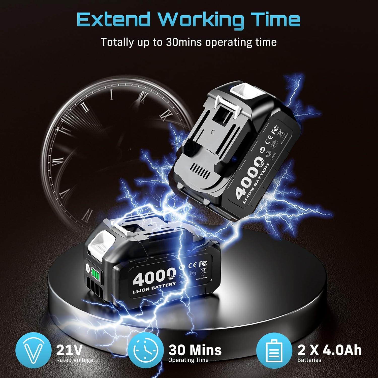 Extended runtime: The 6-1/2″ circular saw is equipped with 2*21V 4000mAh batteries,operating continuously for 30 mins at high speed. It allows you to complete tasks without frequent charging, and feel at ease when using it. Zero downtime for continuous cutting