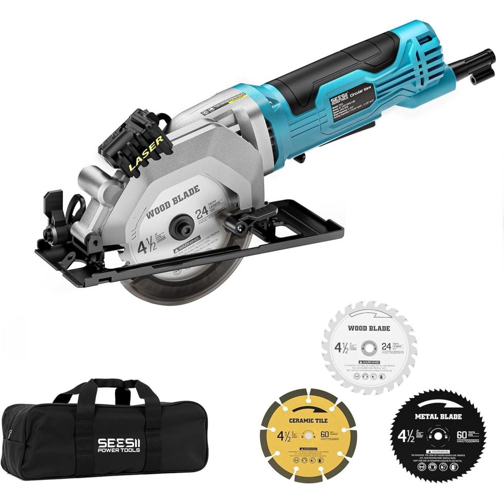Safety and ergonomic design: Features double protection switch, prevents the machine from accidentally opening, promises a safer cutting job; Soft rubber handle designed to comfortably fit in hand for improved control with minimal vibration. The power circular saws cordless is comes with a cloth bag for portable storage