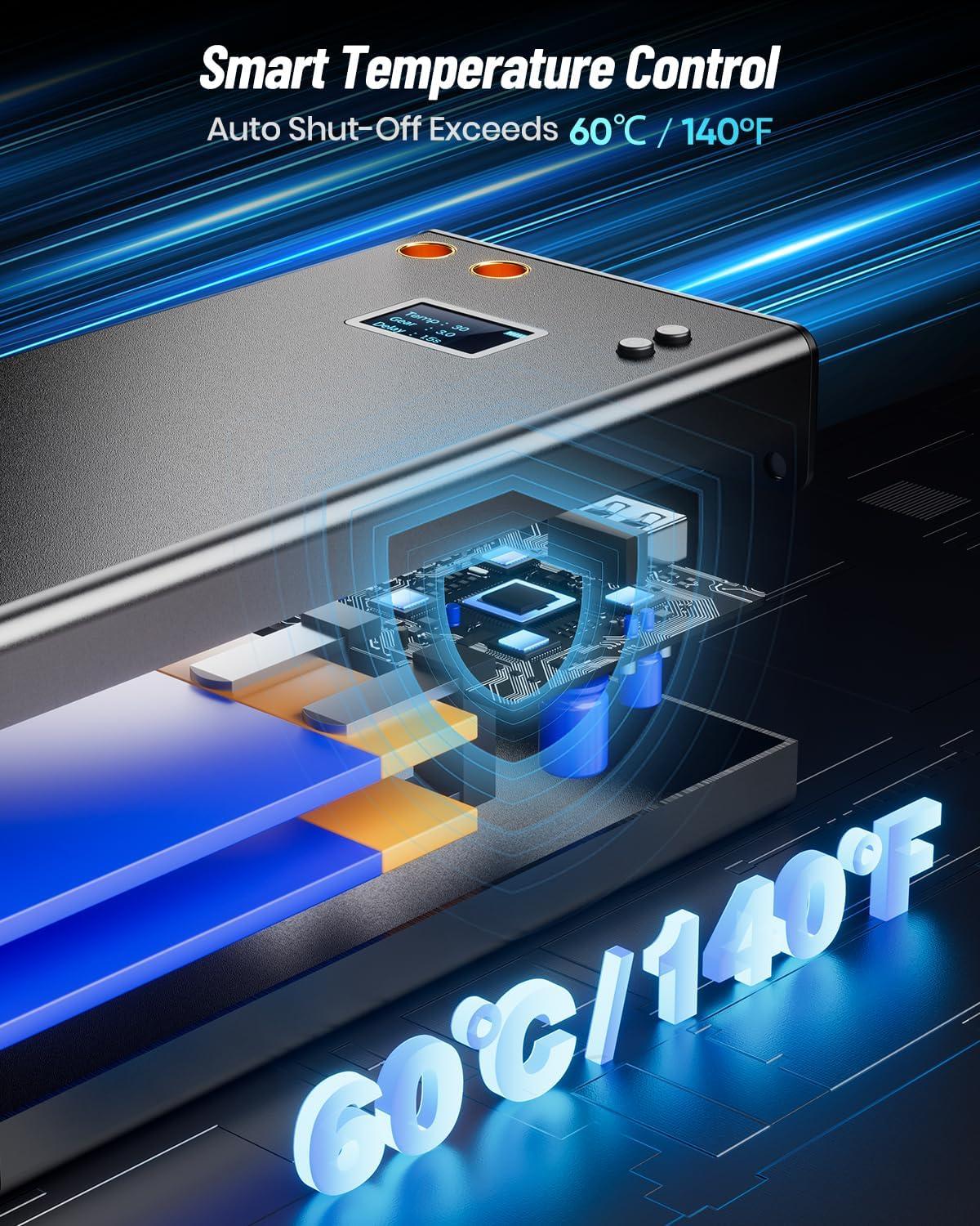 Intelligent and Safe: The 18650 spot welder kit features upgraded chip for convenient operation; The spot welder will automatically stops when temperature exceeds 60℃/140°F to prevent damage. Note: Practice several times to find the right welding strength