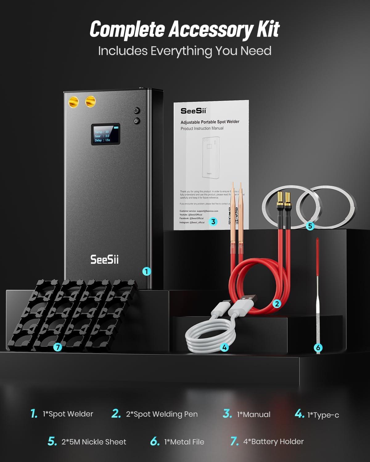 80 Adjustable Power Levels: Seesii SE-002 mini battery spot welder with 80 adjustable power levels; Fine-tune between 1-8 and 1.1-5.4-8.0 levels for precise welding; Delay time can be adjusted from 1-5 seconds, making it useful for beginners