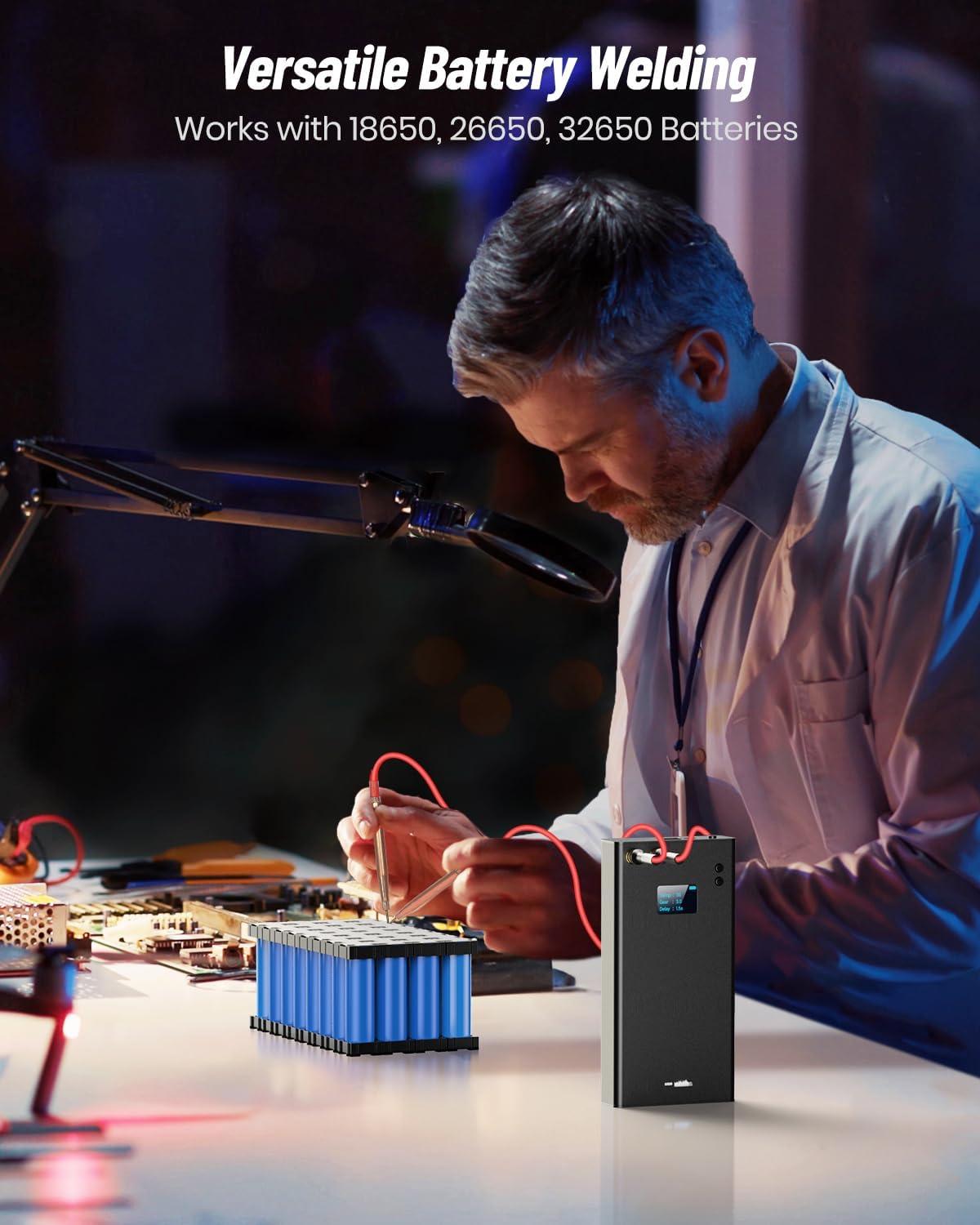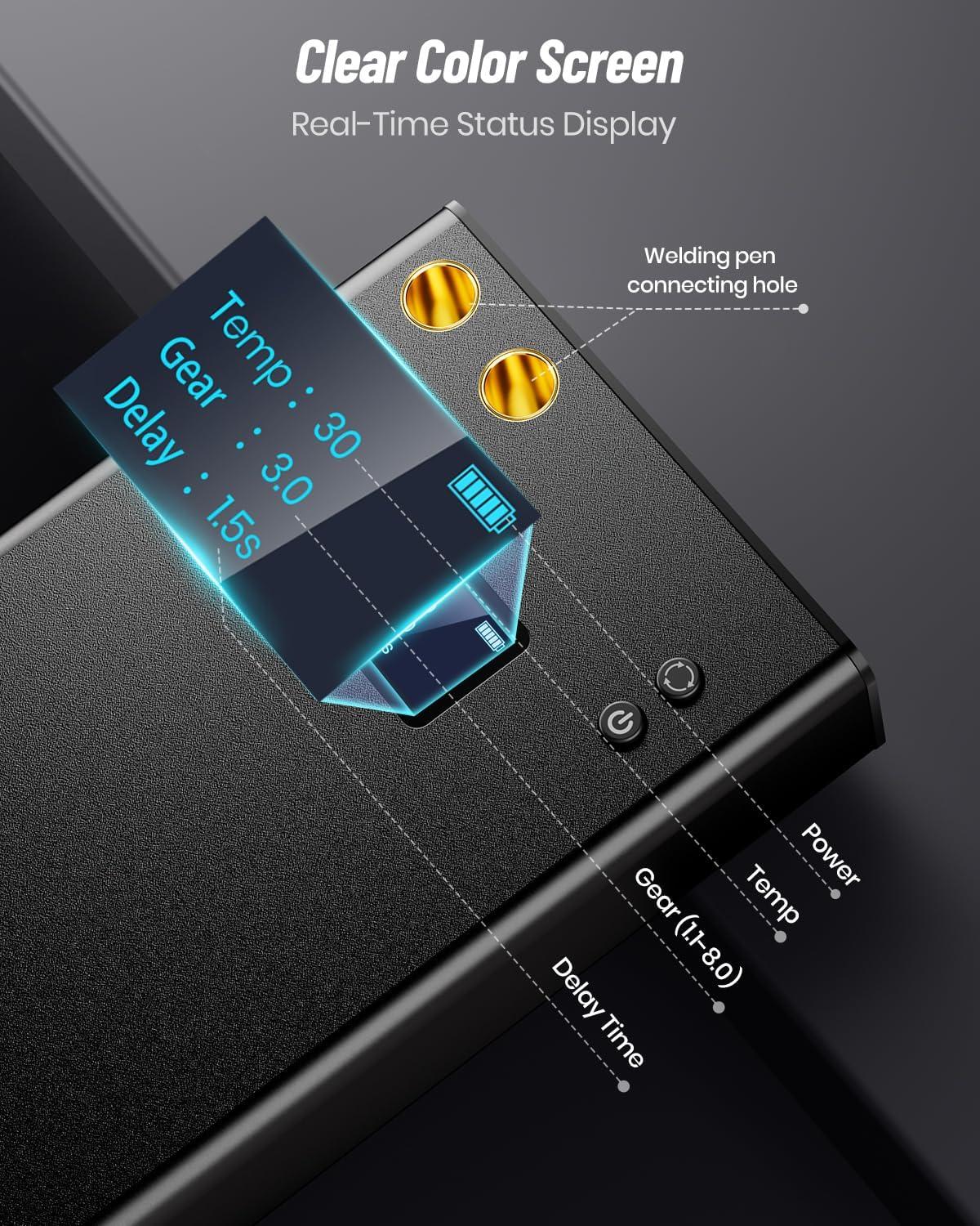 LCD Visible Screen Display: Our spot welder for battery designed with a colorful LCD screen; Displays remaining battery, delay time, temperature, and gear level; Monitor working conditions at a glance for a safer, more efficient welding practice