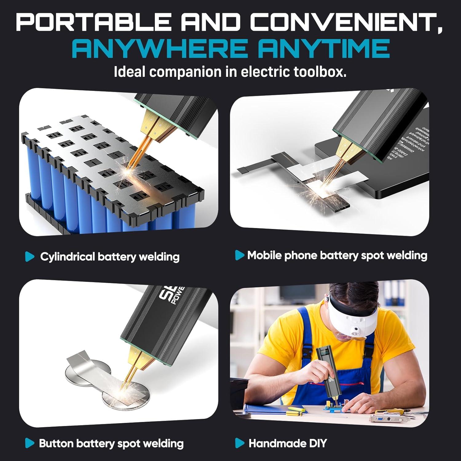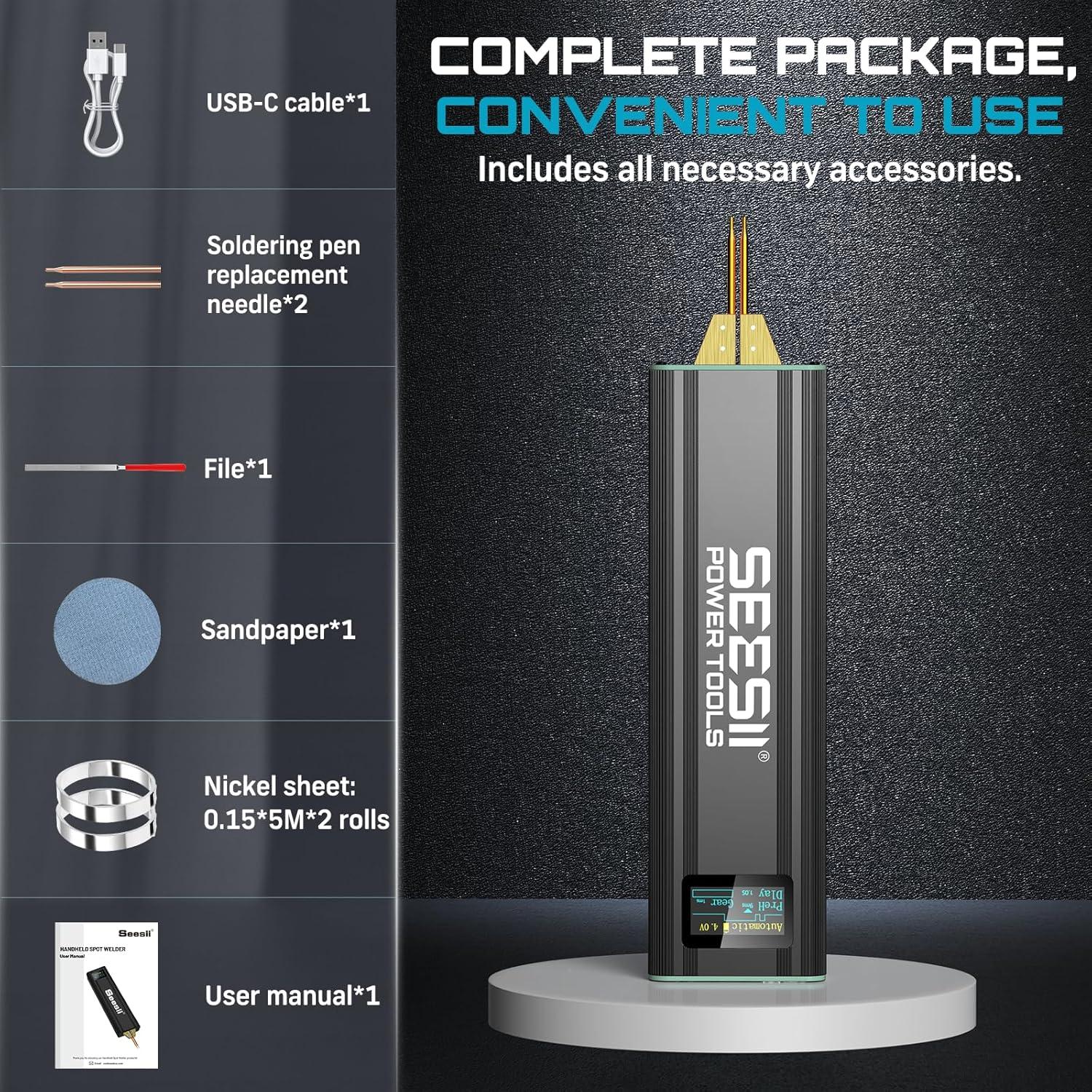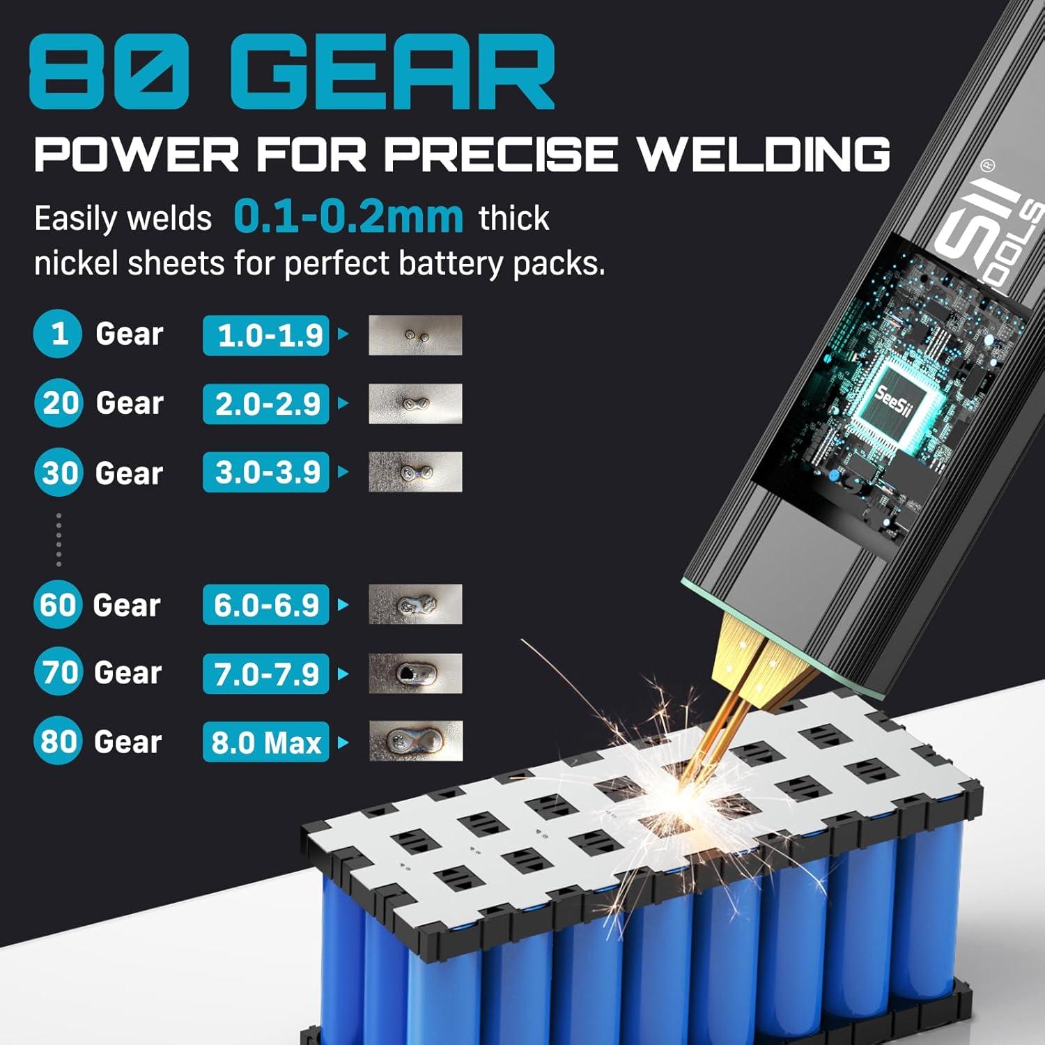 Compact Integrated Design: The SeeSii handheld battery spot welder features a fully integrated design, seamlessly combining the welding pen and power unit into a single compact form factor; Engineered for one-handed operation, it eliminates the need for external cables or connections, making it ideal for mobile applications, home workbenches, or confined spaces