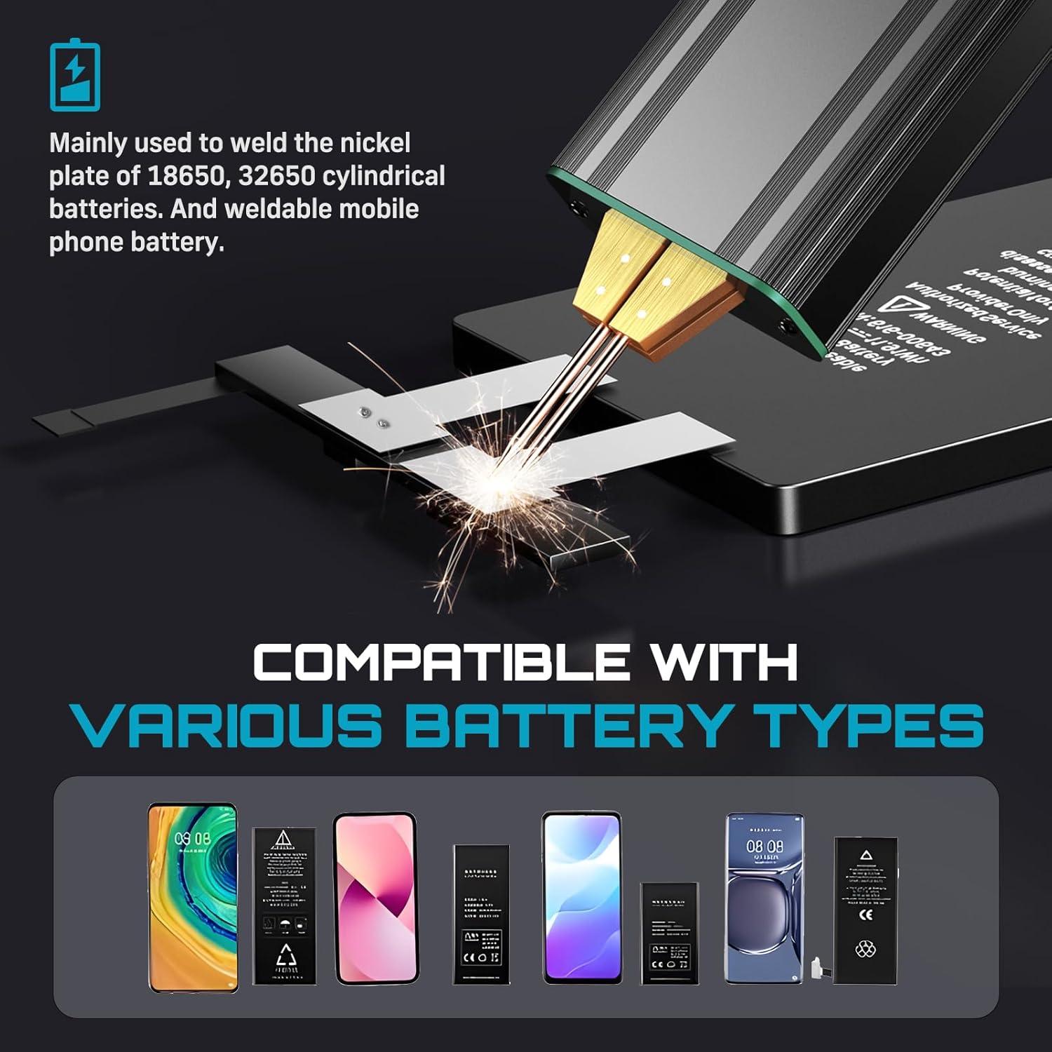 Versatile Battery Welding Capability: This lithium battery spot welder supports a wide range of cell types, including lithium cells, as well as NiMH and Ni-Cd batteries; It is compatible with 0.1–0.2mm nickel-plated, stainless steel, and iron sheets, making it perfect for DIY battery pack assembly and electronic repair projects