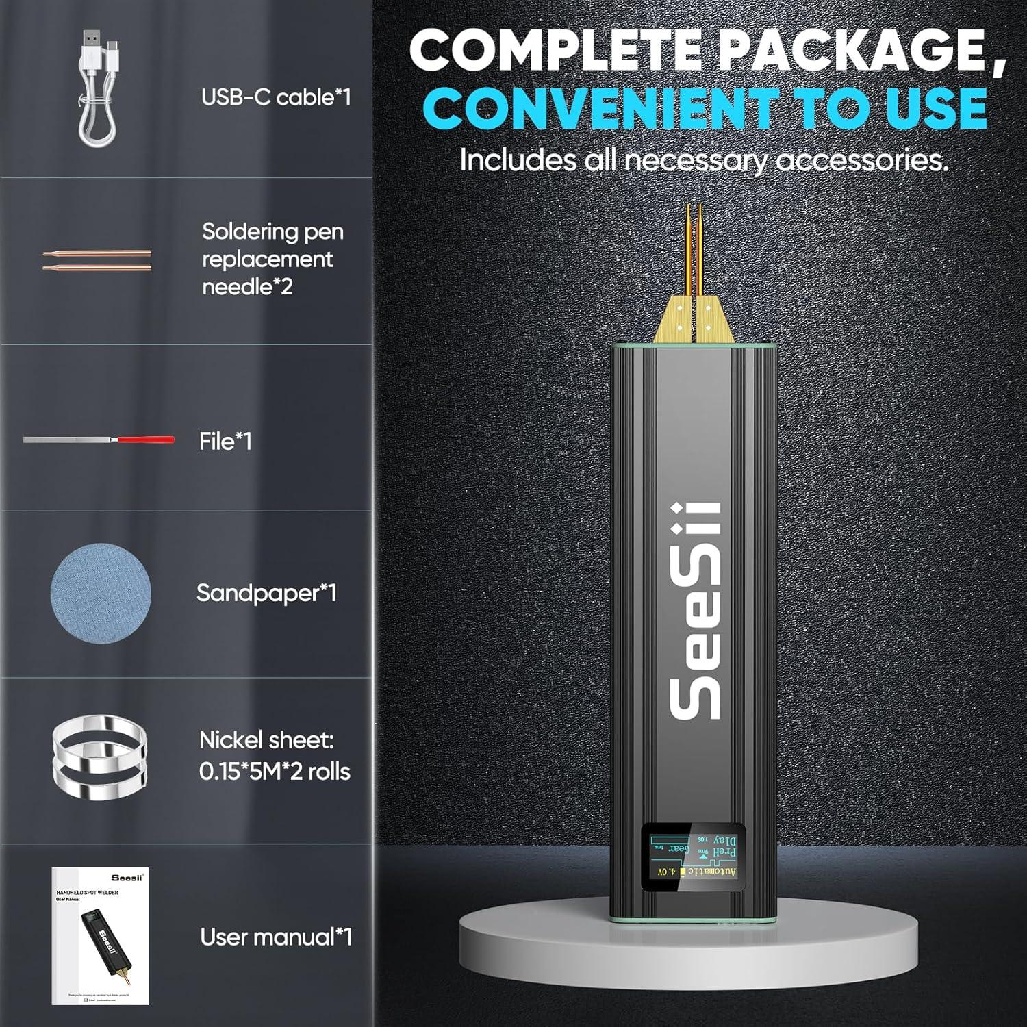 Compact Integrated Design: The SeeSii handheld battery spot welder features a fully integrated design, seamlessly combining the welding pen and power unit into a single compact form factor. Engineered for one-handed operation, it eliminates the need for external cables or connections, making it ideal for mobile applications, home workbenches, or confined spaces
