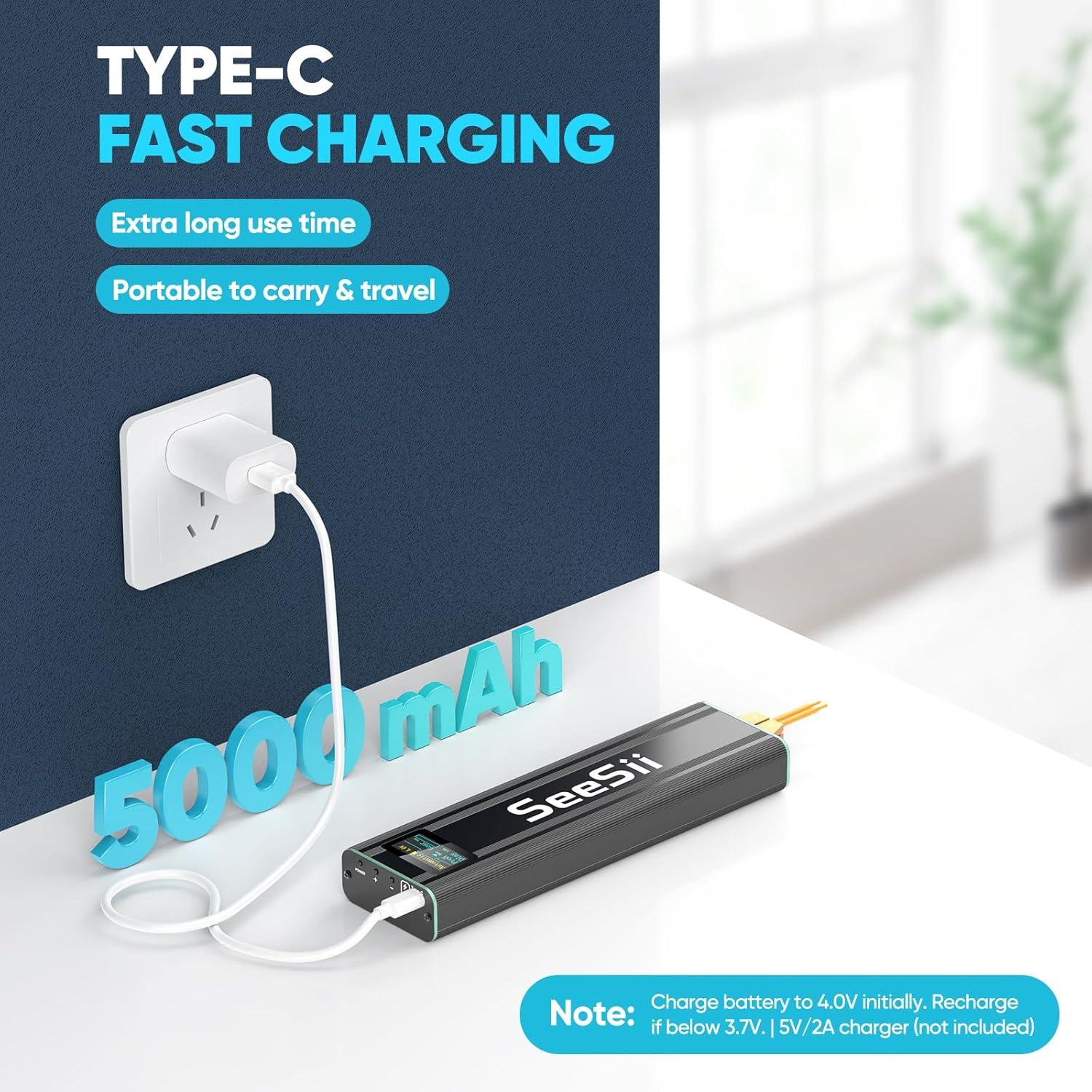 Fast Type-C Charging: Equipped with a 5000mAh rechargeable battery, it delivers up to 800A of output current and supports over 800 welds per charge. The Type-C charging interface enables rapid, efficient recharging to minimize downtime