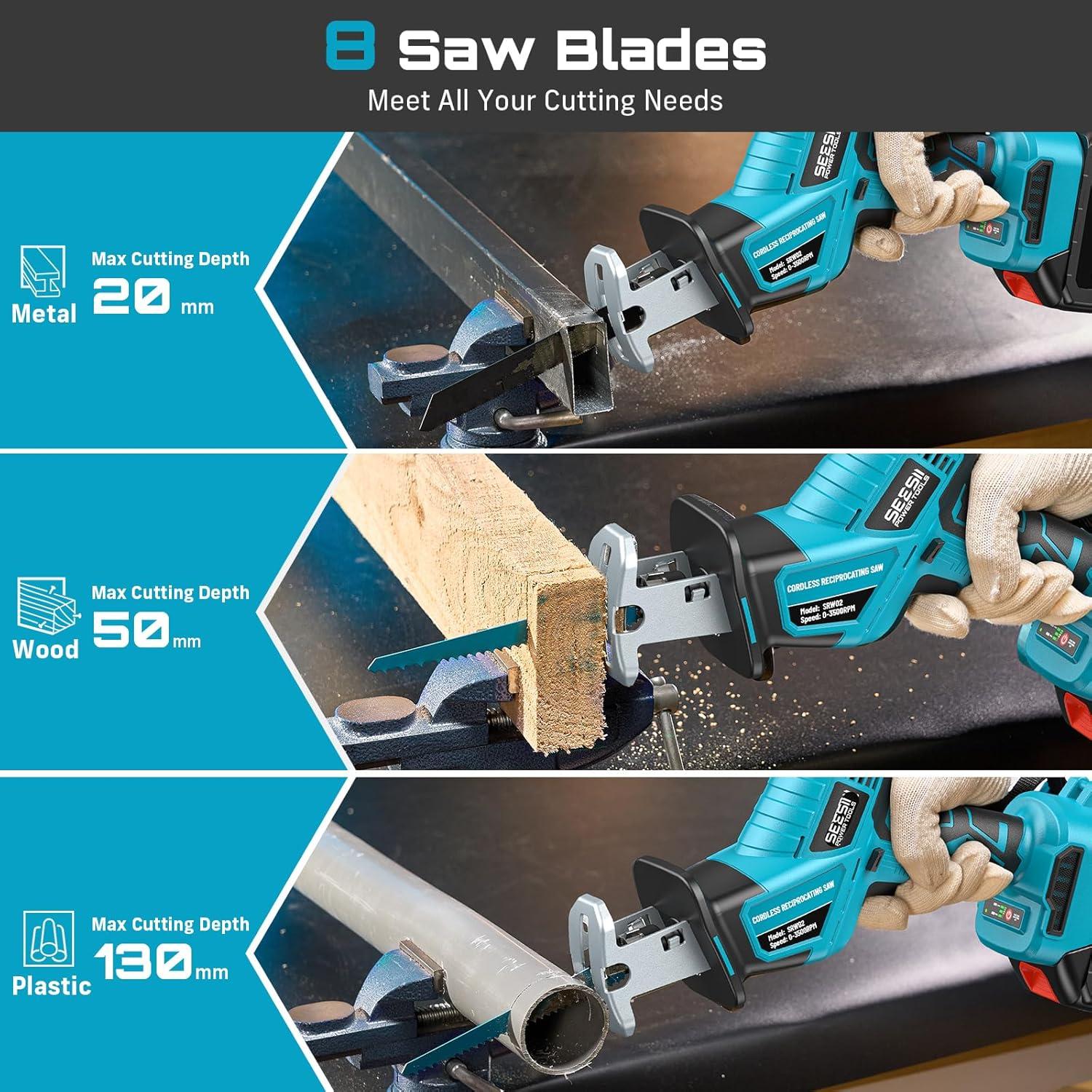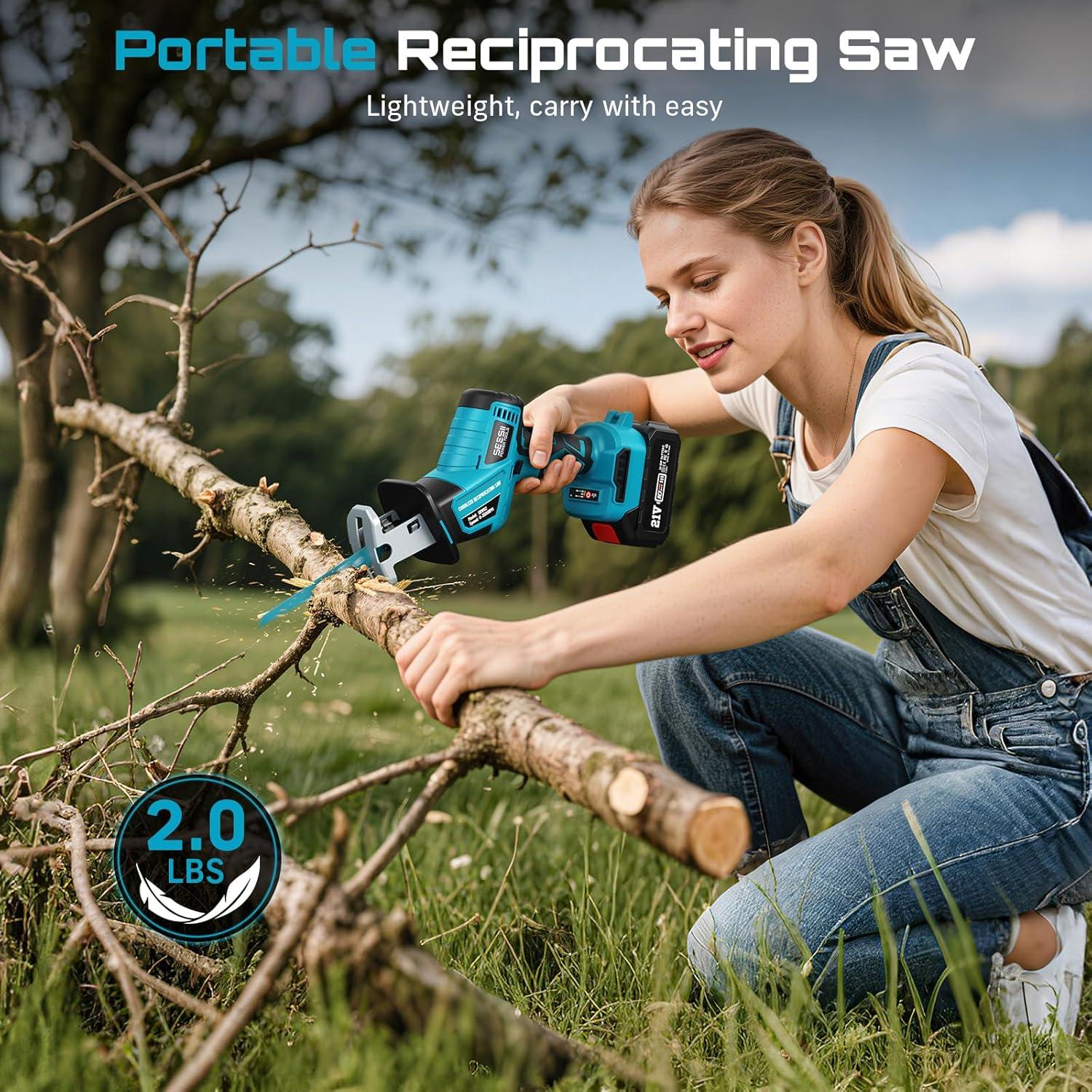 Extended Battery Life for Long Projects: With 2 x 4.0Ah batteries, you'll enjoy extended usage time. The fast-charging feature means you're always ready to go, minimizing downtime. This reciprocating saw cordless ensures you can complete your projects without interruptions.