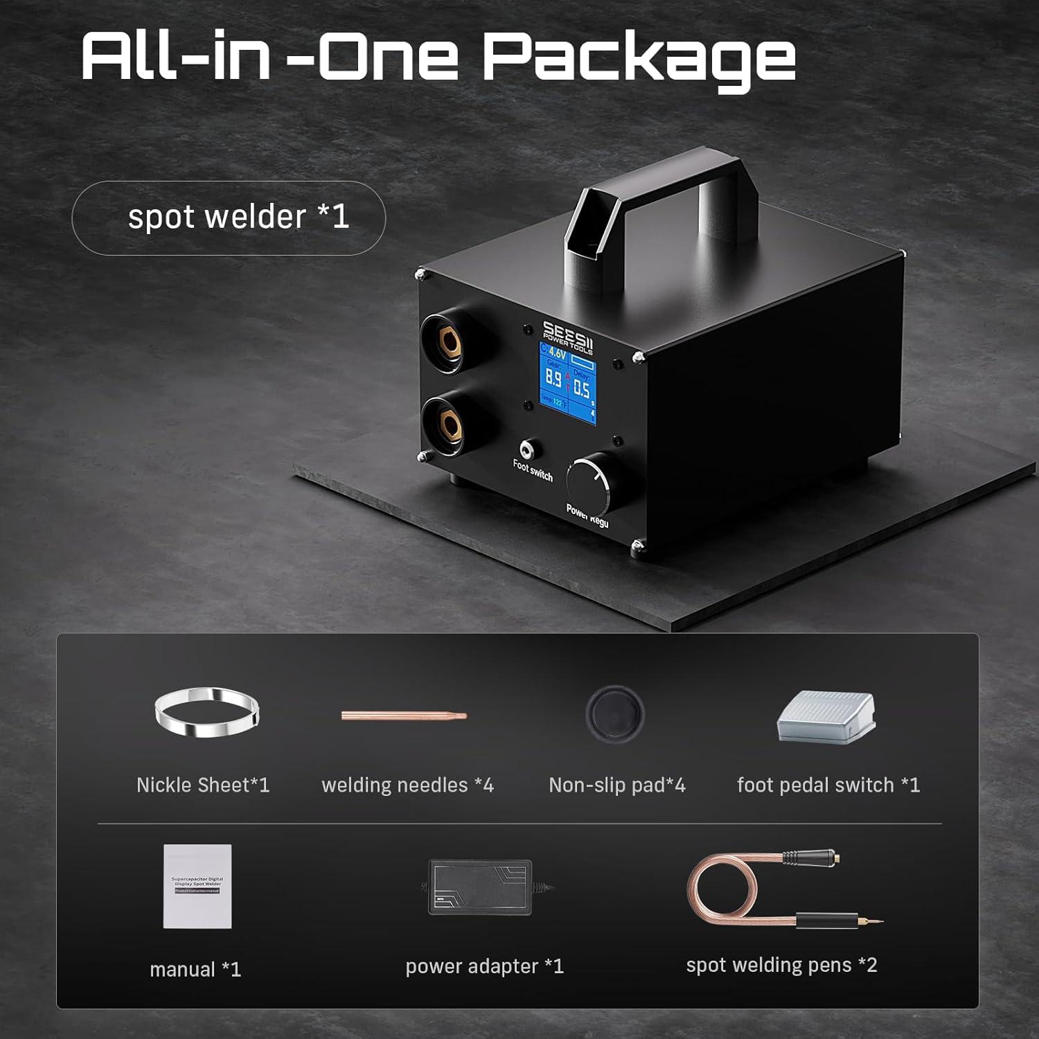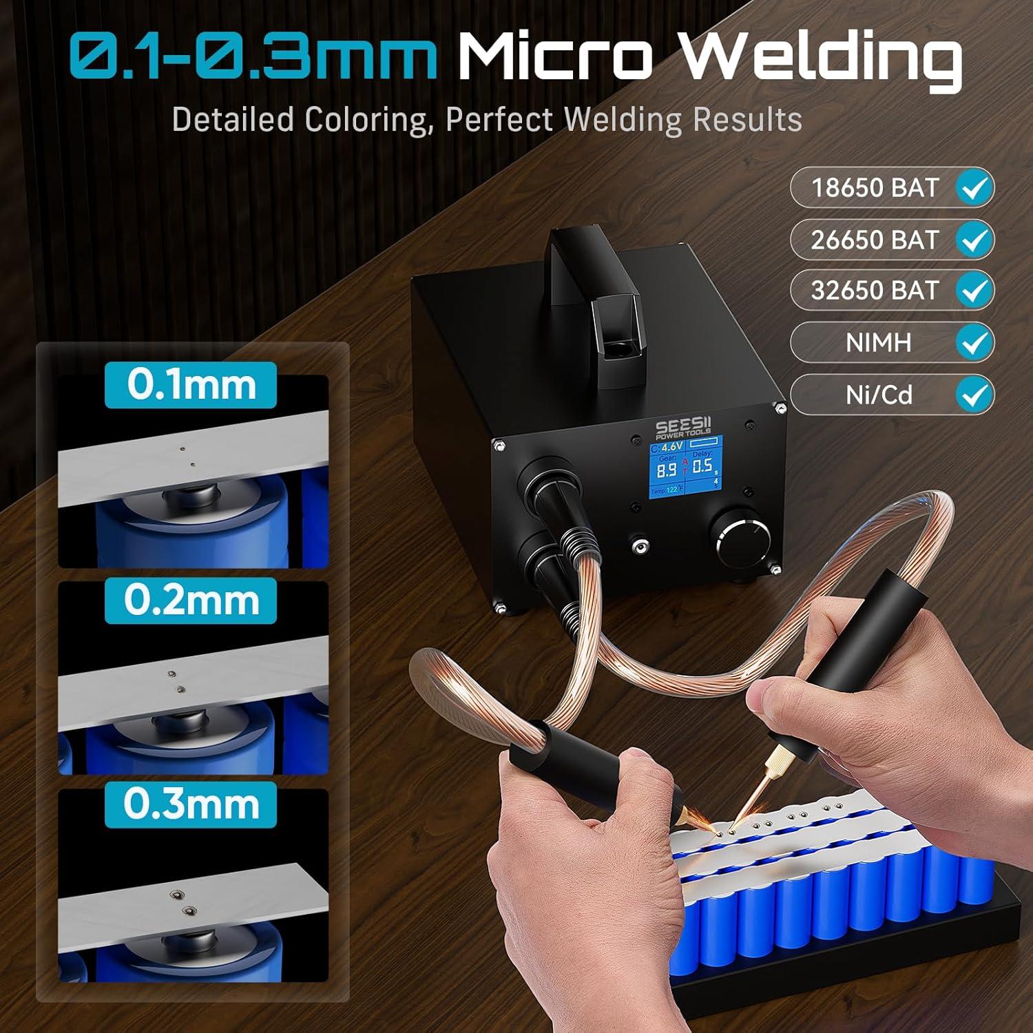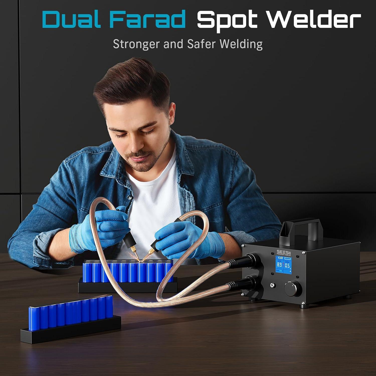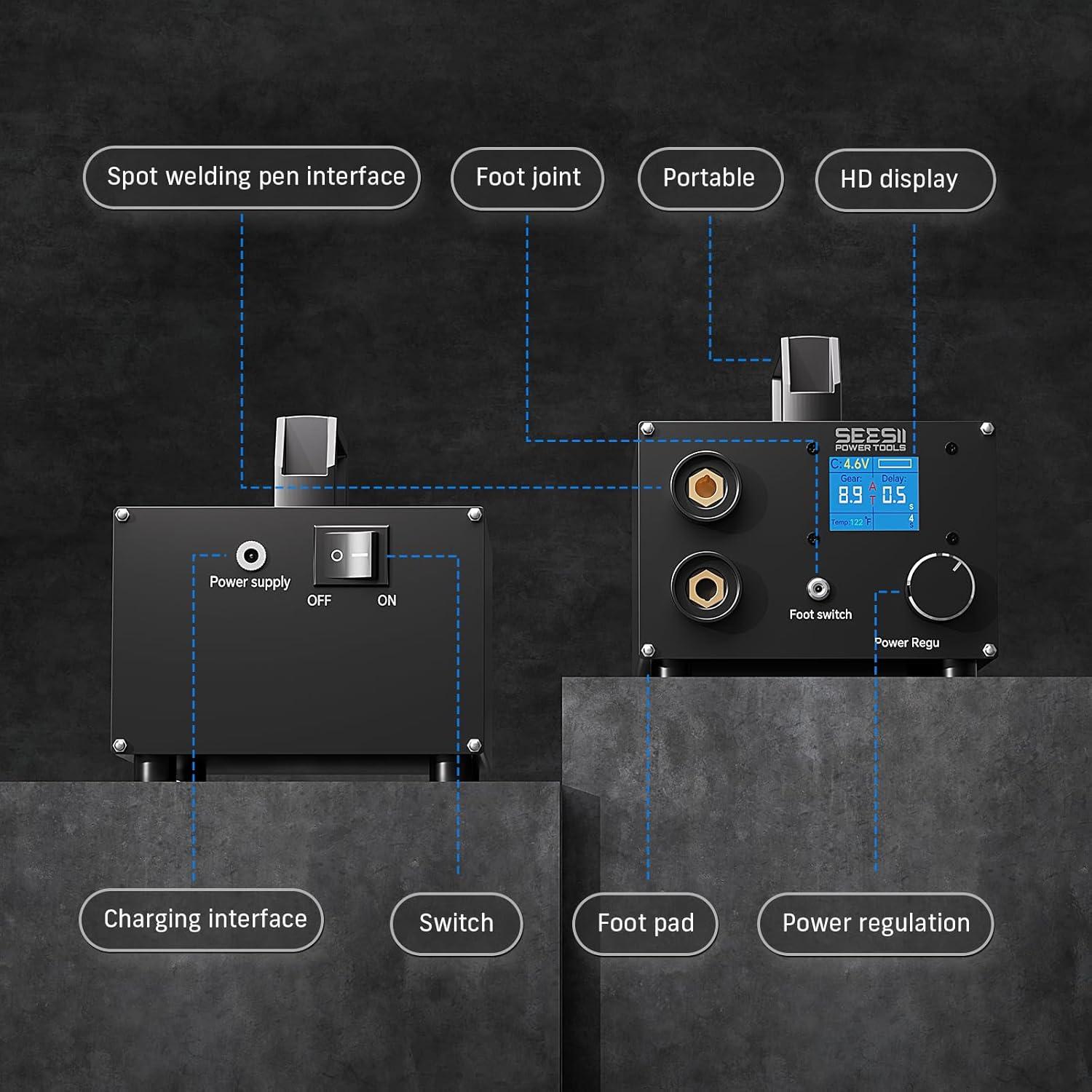 AC-Powered Spot Welder: This SEESII SE-223 battery spot welder delivers up to 1400A from 3000F supercapacitors; provides stable, high-energy output for spot welding 0.1-0.3mm nickel strips; ideal for battery pack building and repair