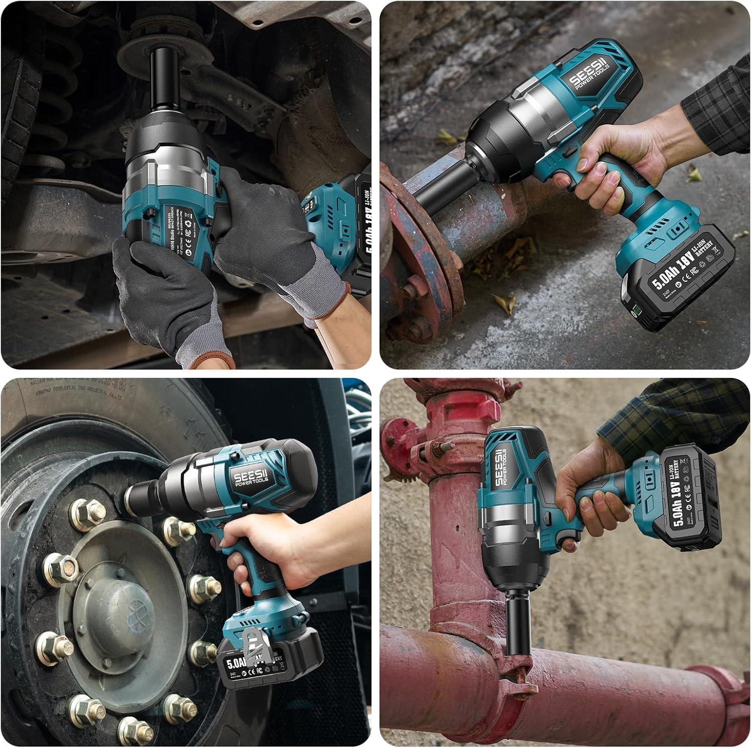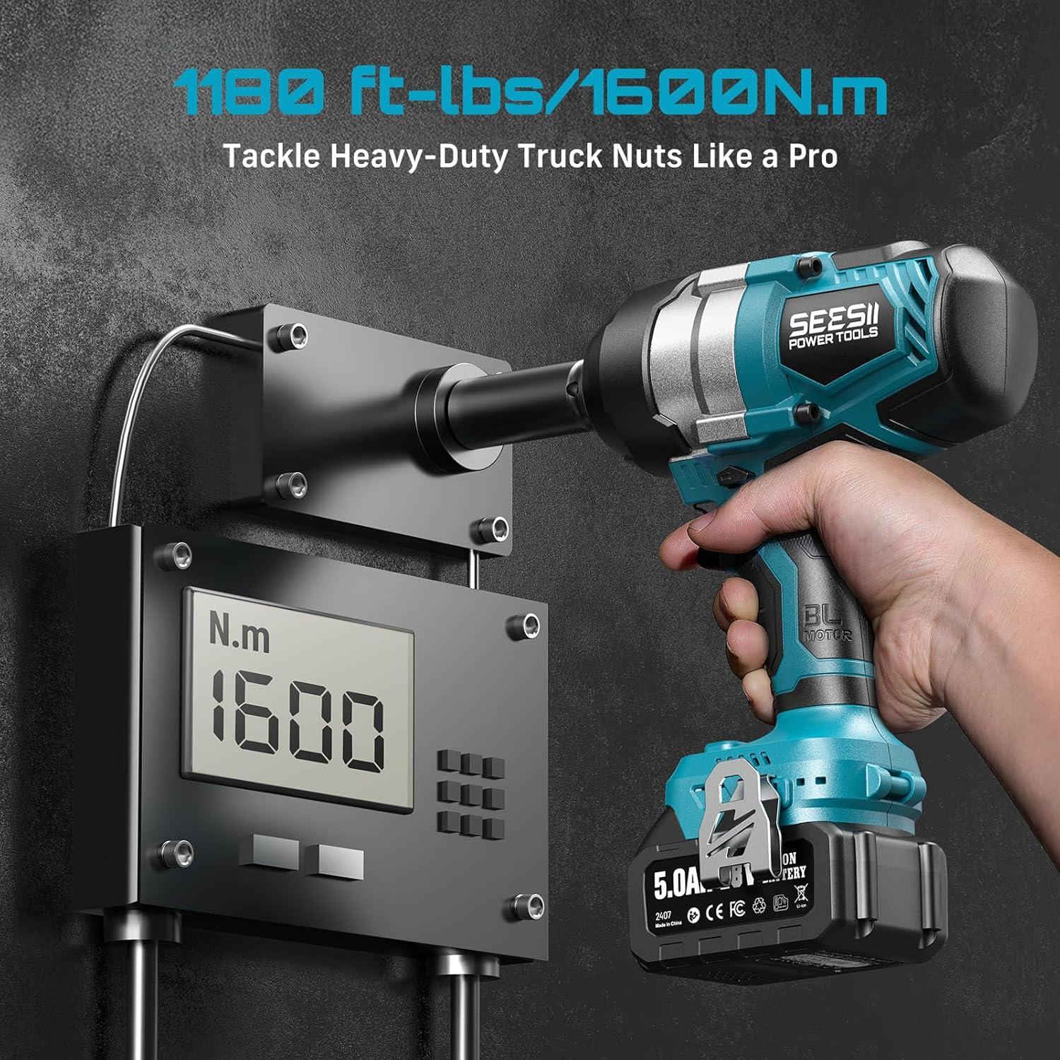 Seesii Cordless Impact Wrench, 1180Ft-lbs (1600N.m) 1/2 High Torque Brushless Impact Gun 2500IPM, 18V Power Impact Wrench, 2 * 5000mAh Battery, 4 Sockets, Variable Speeds for Car/Truck RV/Mower,WH810(1400N.m)