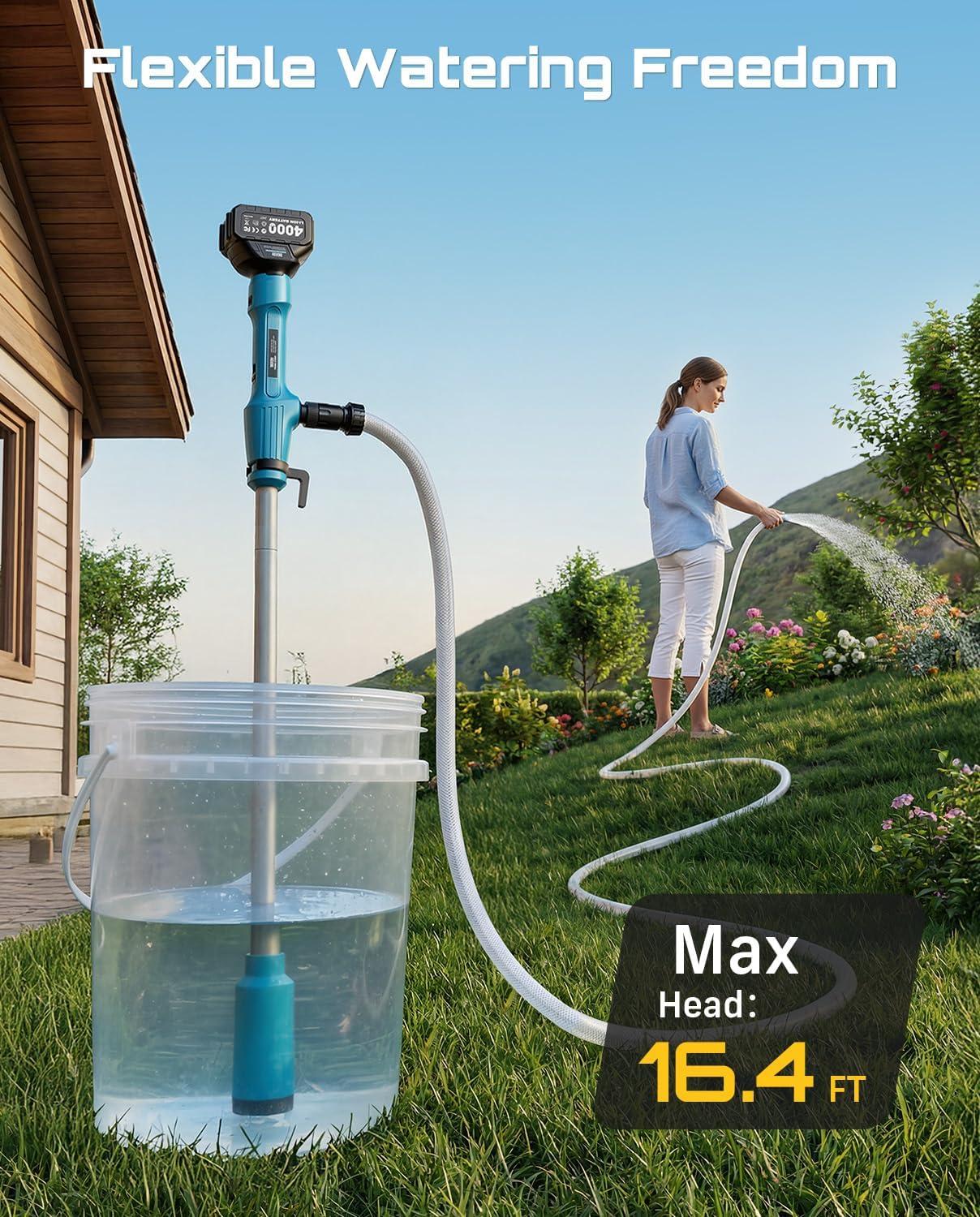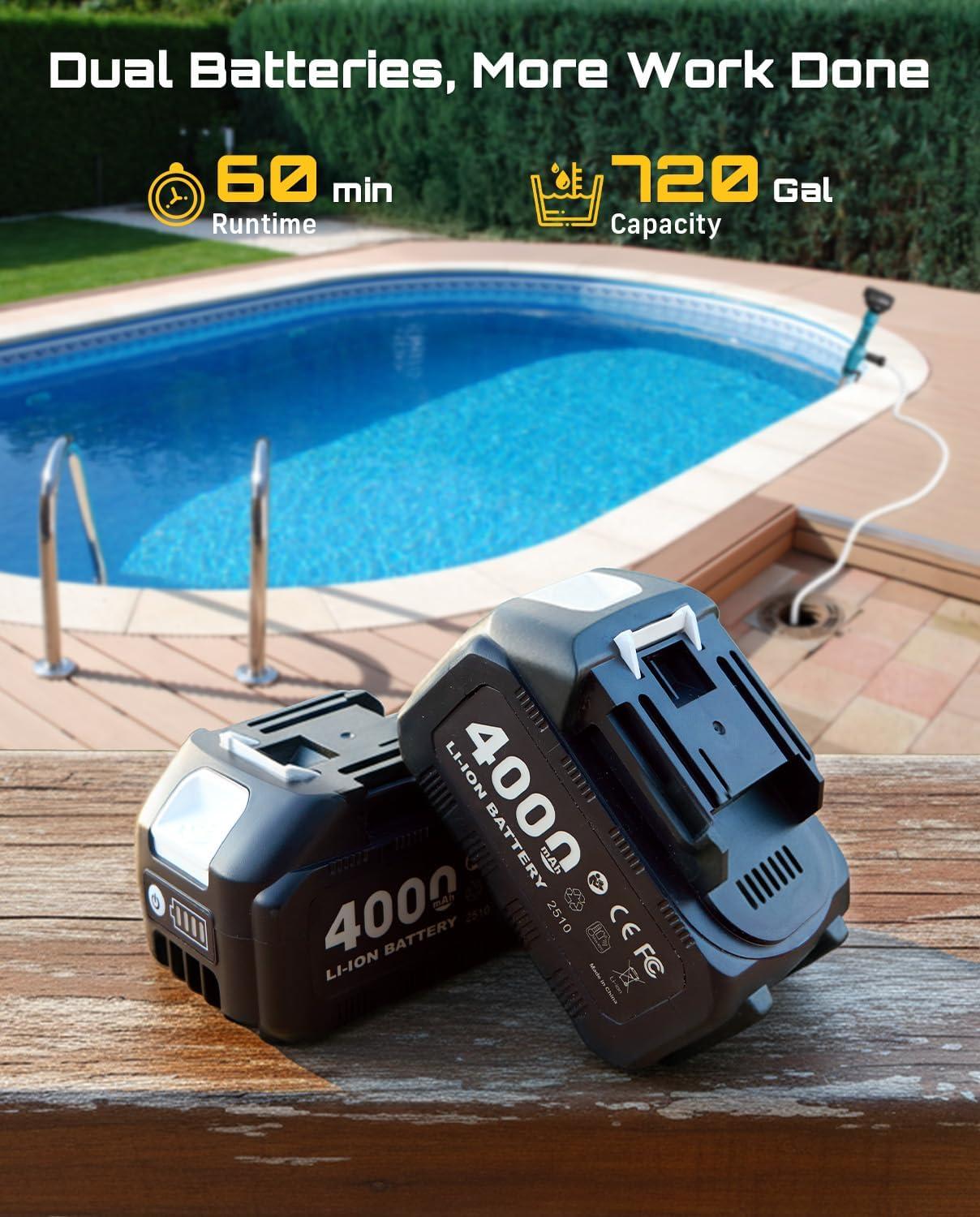 Your Off-Grid & Emergency Water Solution – 1-Hour Runtime with Included Batteries: No outlet? No problem. Powered by two included 4000mAh batteries, this portable battery water pump delivers a full hour of runtime, making it indispensable for remote tasks. Perfect for refilling horse troughs in the field, draining duck ponds, managing water in off-grid cabins, or providing emergency basement flood control during a power outage. True freedom from cords and fixed power sources.