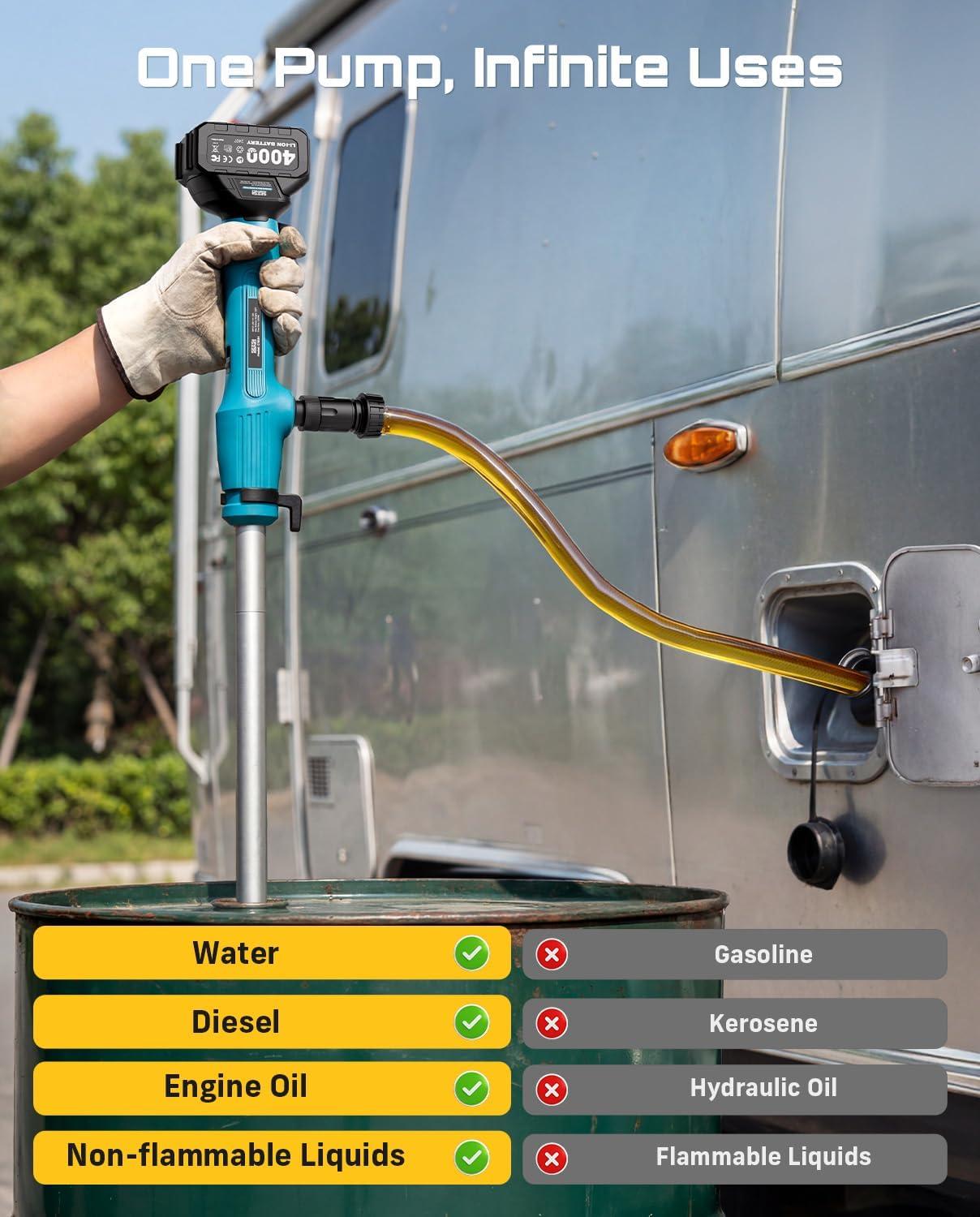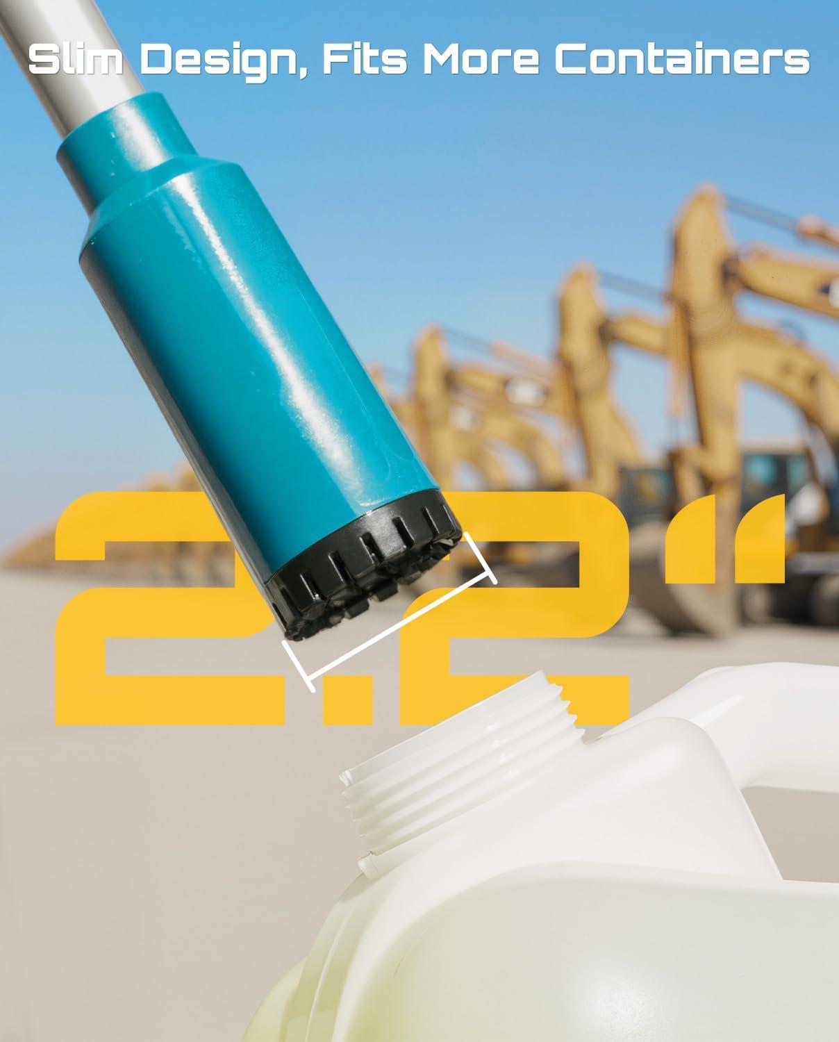 Optimized 2.2″ Slim Head for Broad Compatibility – Fits Most Common Tanks & Openings: This cordless stick pump features a 2.2” diameter, expertly sized for maximum versatility. It easily accesses a wide range of containers including IBC tote valves, many fuel tank openings, large rain barrels, boat bilges, and spacious window wells. Its slim yet robust design provides the perfect balance between reach and durability for the majority of liquid transfer tasks.