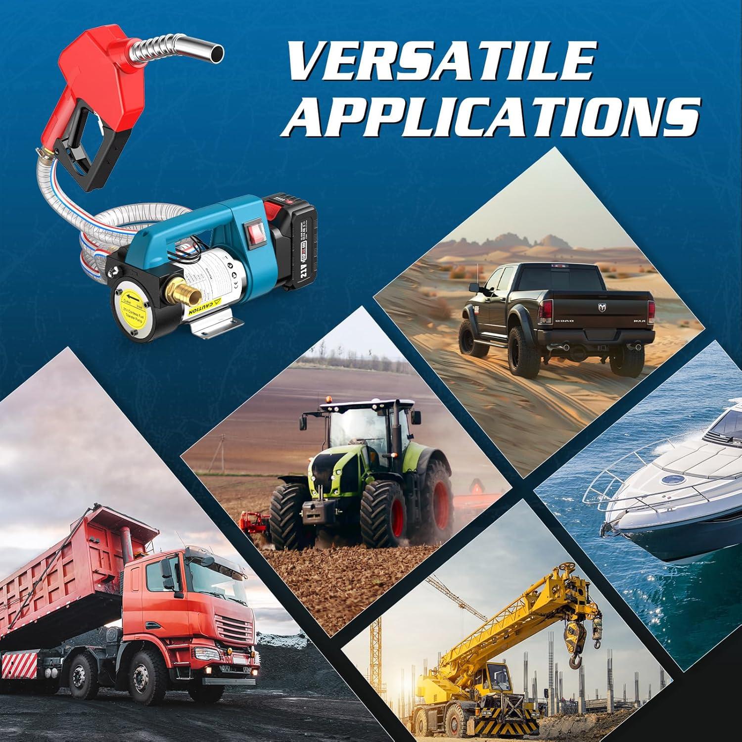【Versatile Fuel Compatibility】This lithium electric pump is specially designed for transferring diesel and kerosene with optimal efficiency. Use your battery diesel pump for farm machinery, small yachts, trucks, or other fuel tanks to save significant time and effort in your daily operations. Note: This unit is not compatible with water, gasoline, or alcohol