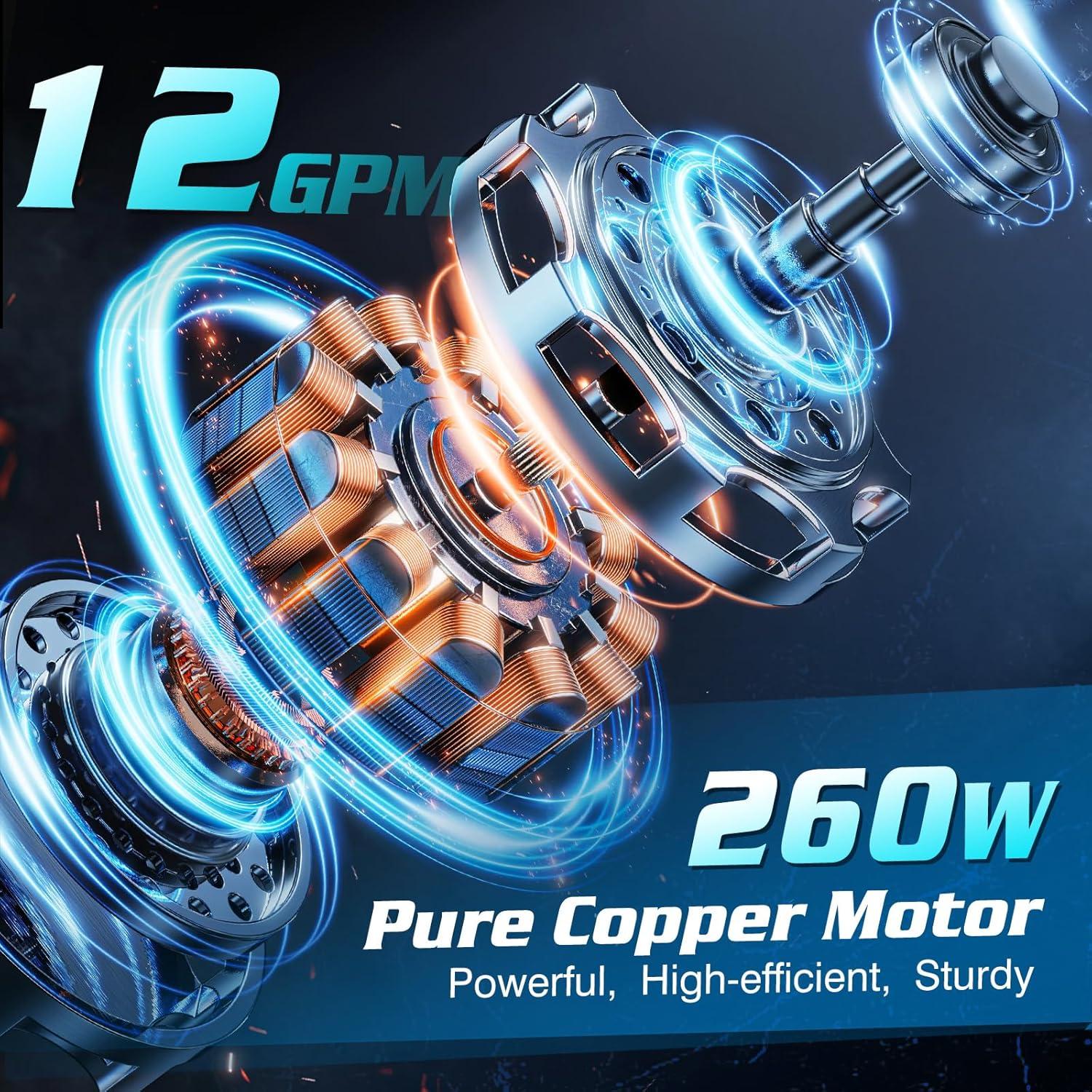 【Fast & Efficient Fuel Transfer】 Experience rapid fuel transfer with a powerful 12 GPM flow rate, 16.4 ft suction, and 32.4 ft lift—this means you can fill a 50-gallon tank in just over 4 minutes, reach fuel sources up to 16.4 feet below the pump (perfect for deep storage tanks), and deliver fuel to equipment as high as 32.4 feet (ideal for tall farm machinery or boat decks).