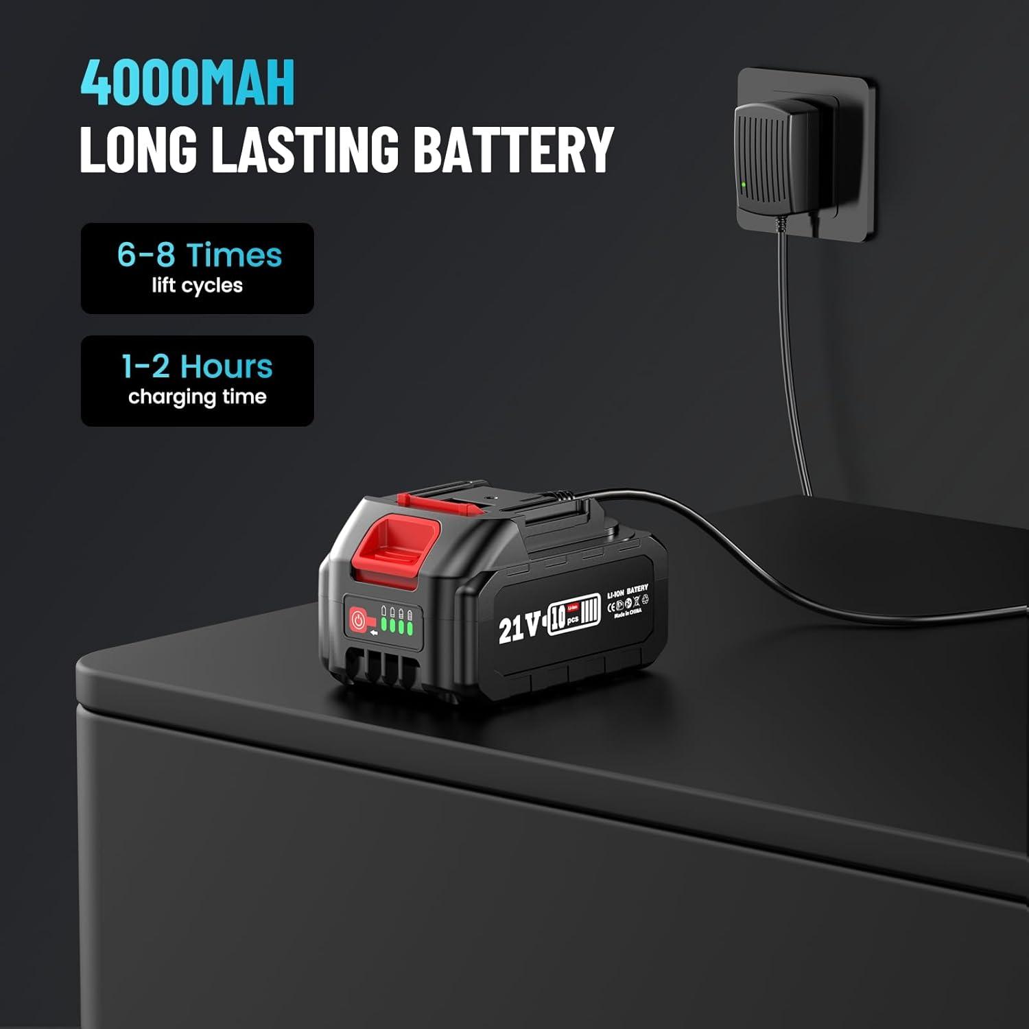 【Long-Lasting & Fast Charging】Powered by a high-capacity 4000mAh lithium battery, this jack delivers 6-8 full lifts per charge. It also features a fast charger, allowing a full recharge in just 100 minutes. Say goodbye to waiting—keep your gato hidráulico para carro powered up and ready for use whenever you need it. A must-have for frequent travelers and emergency roadside situations