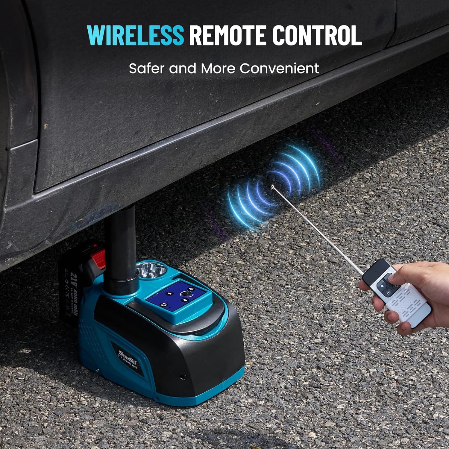 【Simple One-Button Operation】Lifting your car has never been easier! This car jack electric features a one-button operation that can be controlled via remote or onboard buttons. Whether you prefer to stay at a safe distance or operate it directly, you have the flexibility to choose. Perfect for quick, stress-free tire changes without extra effort