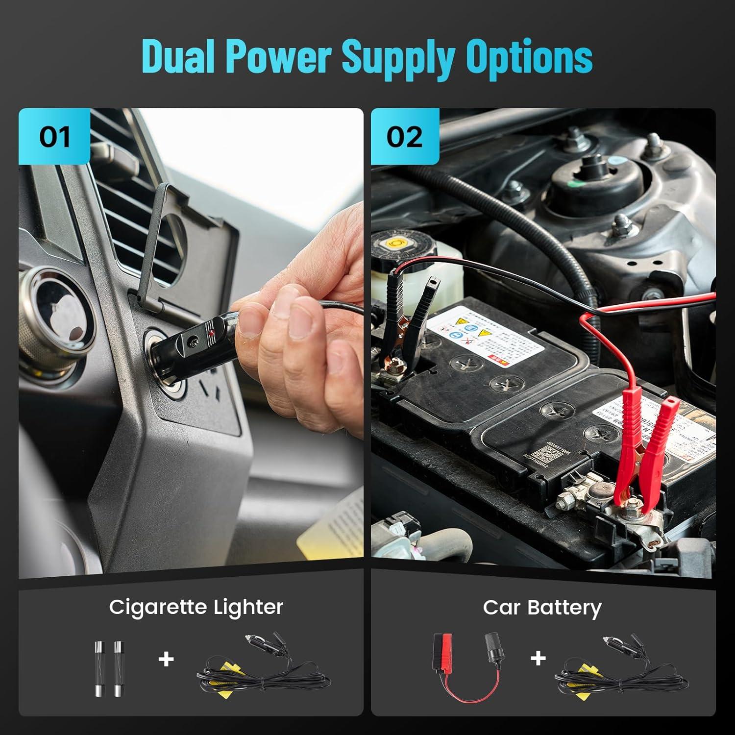 Universal 12V Power: Power your electric car hydraulic jack directly from your vehicle's cigarette lighter or 12V car battery. The generous 12-foot power cord ensures you can conveniently position it near the front or rear wheels. Includes TUV and UL-certified spare fuses for added security and peace of mind