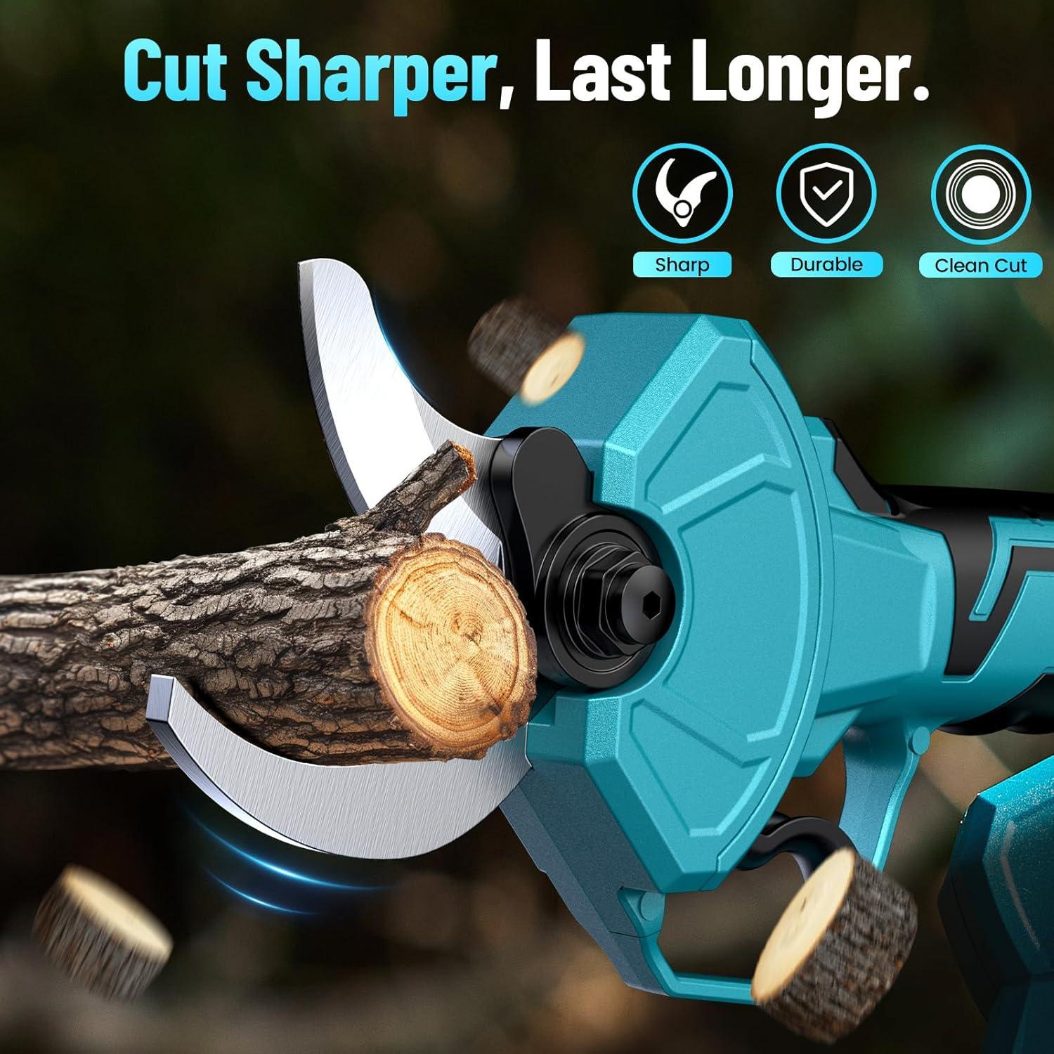 More Power, Longer Life: The battery pruner’s brushless motor delivers superior performance and durability; It runs cooler, lasts longer, and provides consistent power, making it ideal for heavy-duty, long-lasting trimming tasks