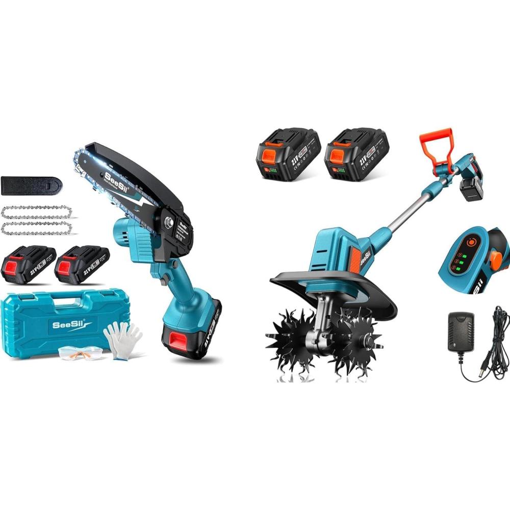 SEESII Electric Tiller for Gardening 300 RPM,SEESII Mini Chainsaw Cordless 6-inch