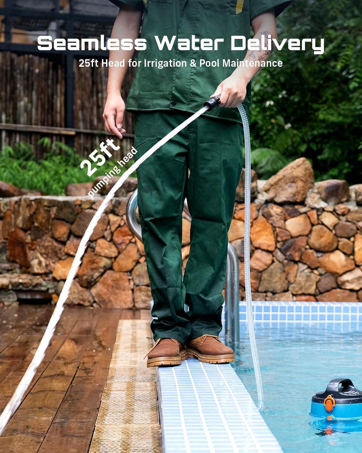 7.8 Pounds Lightweight & Easy-Carry: Experience unparalleled ease of use with the SEESII portable water pump, crafted for ultimate portability. Tipping the scales at just 7.8 pounds, this water transfer pump features a perfectly positioned ergonomic top carry handle, designed for comfortable, one-handed carrying and transport. The ingeniously contoured grip distributes weight evenly, ensuring perfect balance and eliminating strain, so moving this portable water pump effortlessly between ponds, job sites, or storage locations becomes surprisingly simple