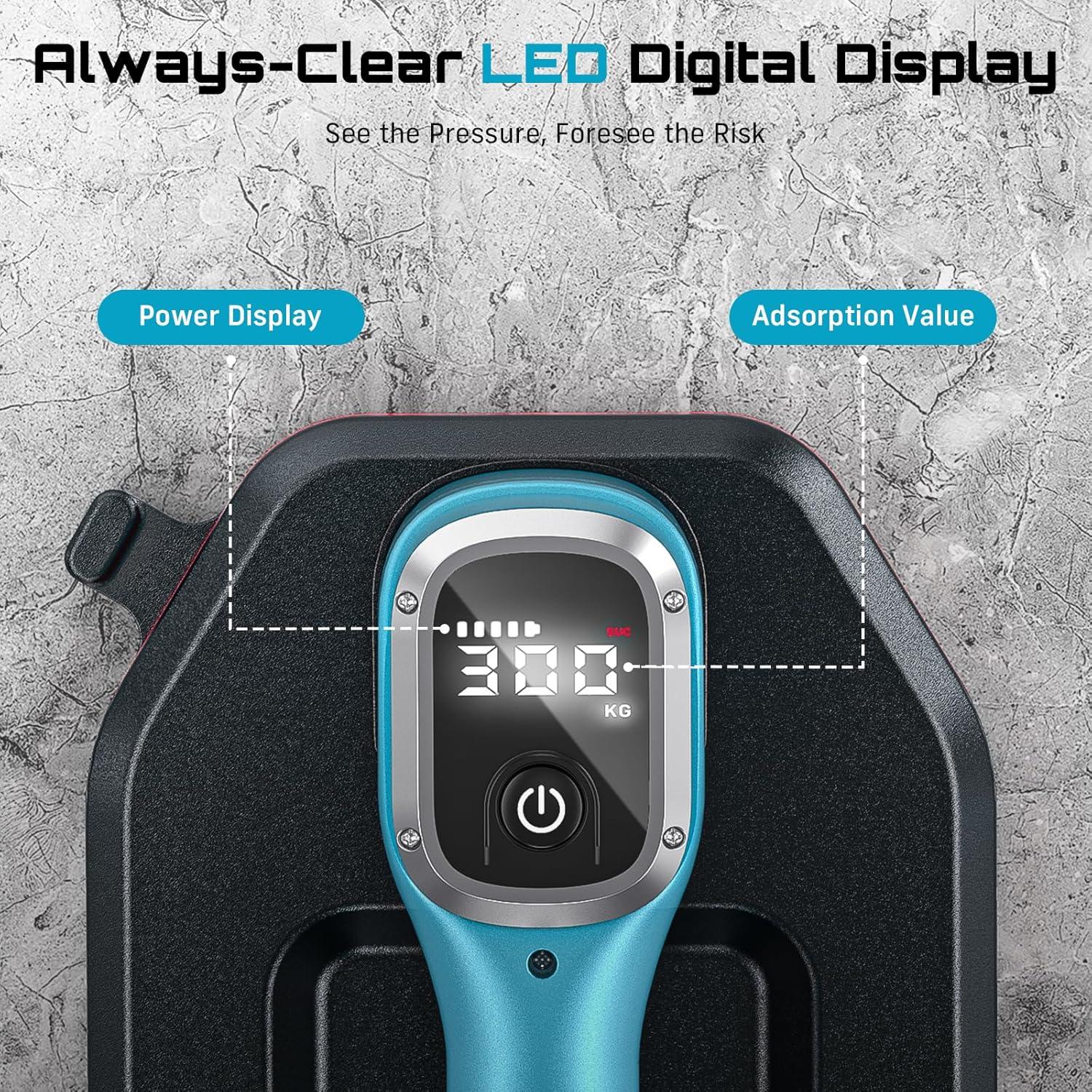 【Always Know the Suction & Battery Status】:Stay in total control. The digital screen shows your vacuum suction cup's grip strength and battery life in real-time. If the suction ever dips or power gets low, you’ll know immediately—so you can focus on the task, not the tool
