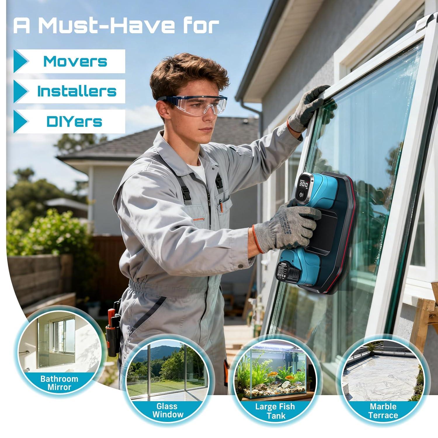 【Lift Heavy Materials with Ease】:Say goodbye to strenuous manual lifting—effortlessly handle glass, tiles, stone, and metal panels with powerful electric suction. Designed for both professional and DIY users, these 16.8V electric glass suction cups to lift large glass enable faster, safer, and smoother operations, whether you're working alone or with a partner