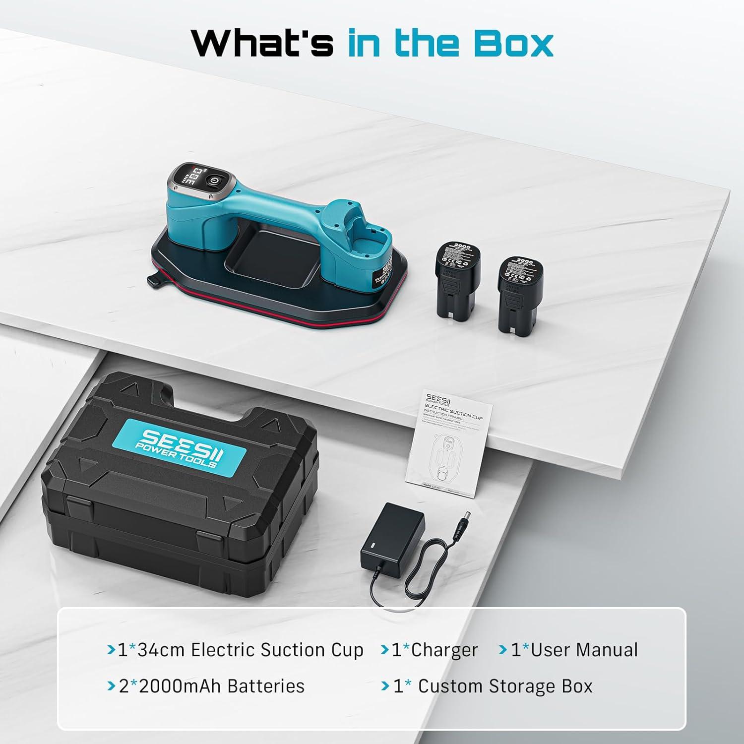 【Everything Stored in a Professional Carrying Case】:Comes with a rugged carrying case that stores the 16.8V electric suction cup for stone, two 2000mAh batteries, charger, spare seals, and manual. Stay organized and job-ready wherever you go