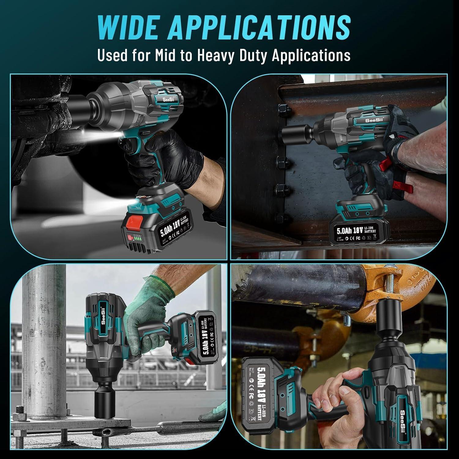 HIGH-EFFICIENCY BATTERY SYSTEM: The SEESII impact wrench's has one 18V 5.0Ah battery delivers 200% longer runtime – enough about 80 minutes of continuous heavy-duty work. With 30-minute quick charge (80% capacity) and a 3-LED power indicator, you'll spend 90% less time waiting and 100% more time working. The SEESII impact wrench perfect for professionals tackling back-to-back jobs – from automotive repairs to construction sites – where reliable power can't fail.