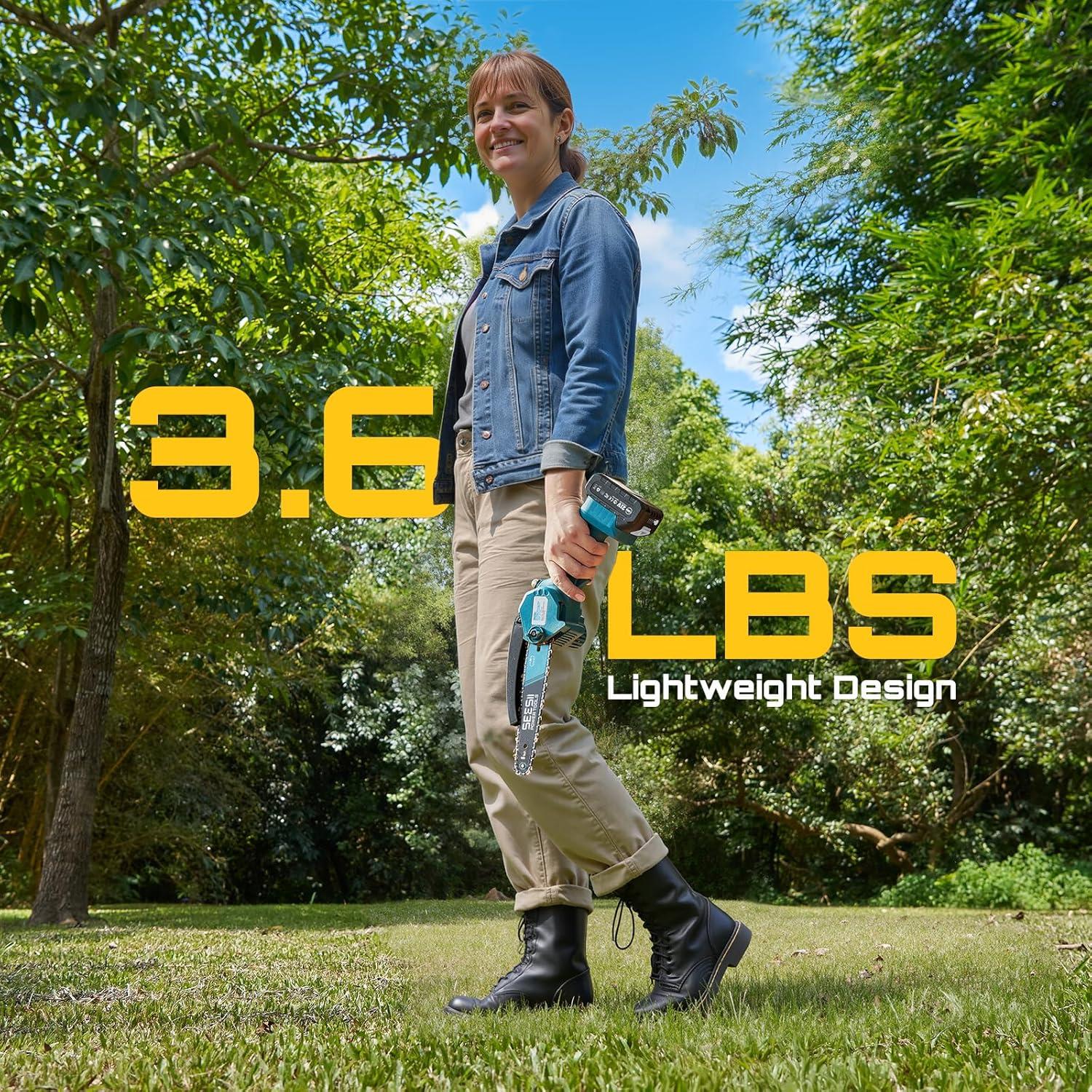 Unmatched Cutting Power & Speed: Experience the ultimate in cutting efficiency with our 8″ mini chainsaw, engineered with a high-performance, quenched guide chain and a pure copper motor. Equipped with dual 21V batteries, it effortlessly slices through logs up to 7.91 inches in diameter in just 10 seconds, delivering swift and powerful results