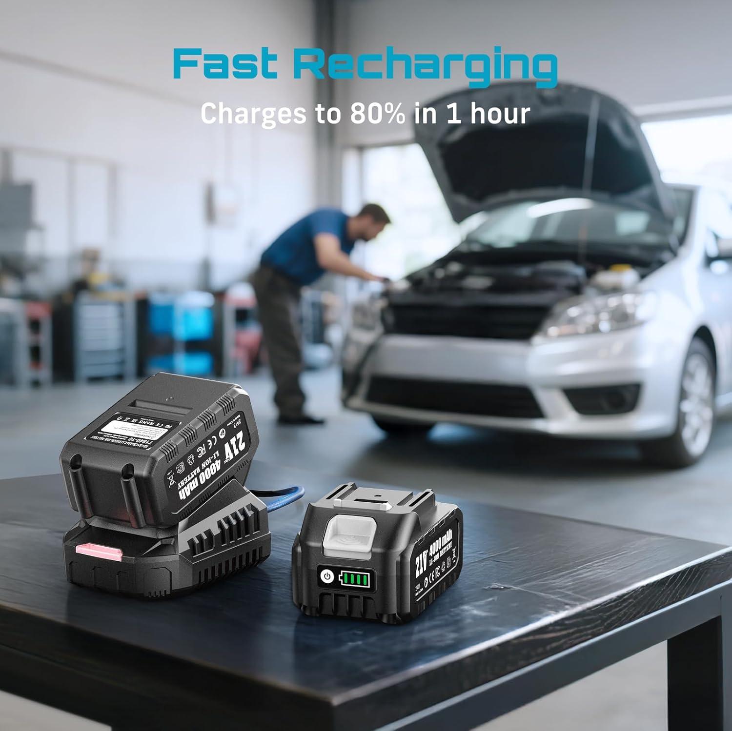High-Efficiency Battery System: SEESII impact wrench set includes one 21V/4.0Ah lithium battery with 200% extended runtime for non-stop work. The 30-minute quick charge (up to 80%) means minimal downtime, while the 3-LED power indicator keeps you informed. The Seesii impact wrench perfect for professionals needing reliable all-day power!