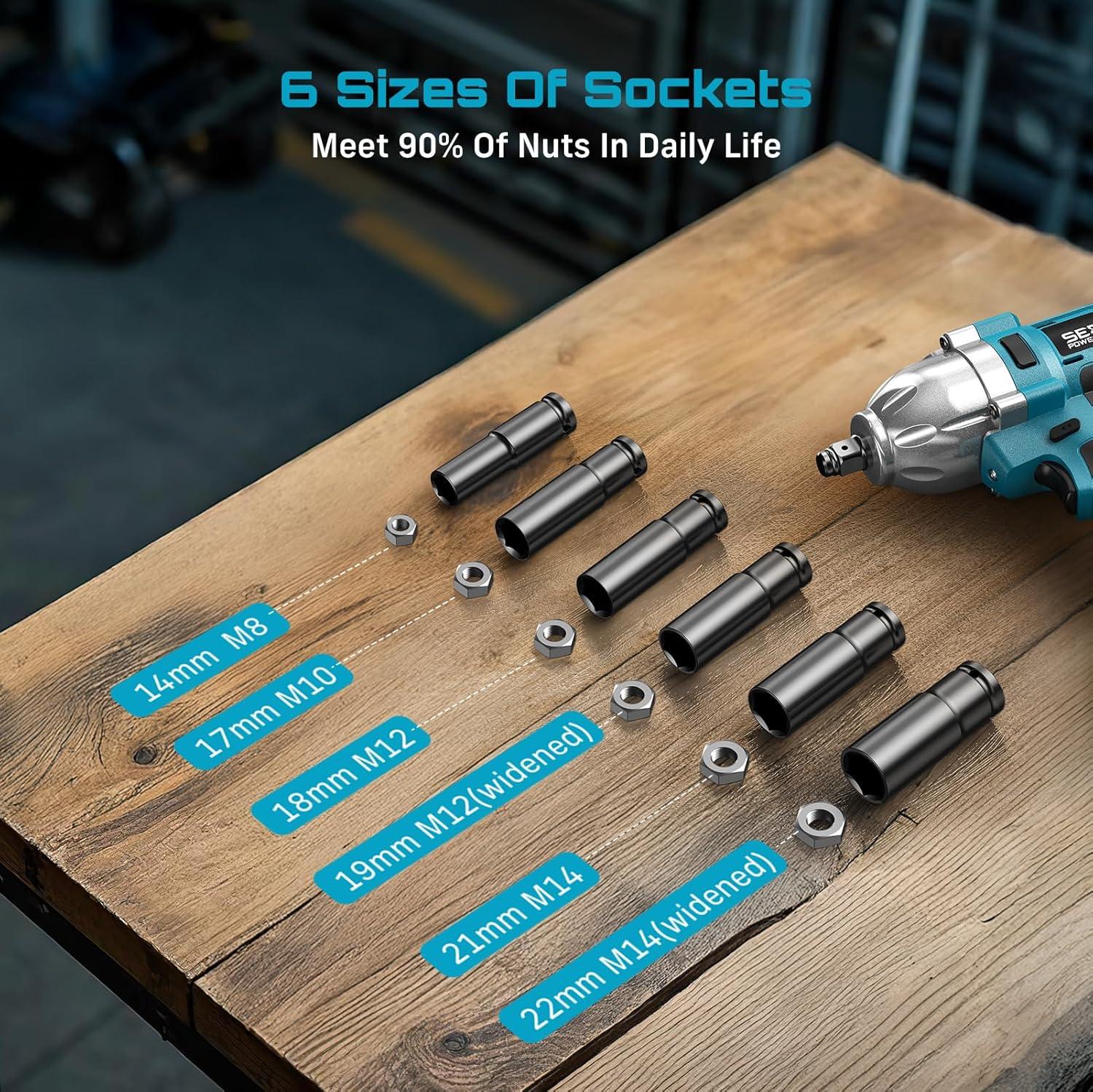SMART SAFETY PROTECTION FOR WORRY-FREE OPERATION: SEESII impact wrench's intelligent chip actively prevents over-current/over-voltage/overheating (70% fewer failures). Auto-stop prevents over-tightening damage, while 10-second auto shutoff extends motor life 3X. Built-in cooling fan maintains optimal temp during continuous use – perfect for marathon car repairs or construction jobs. The impact gun work safer, work longer, work smarter.