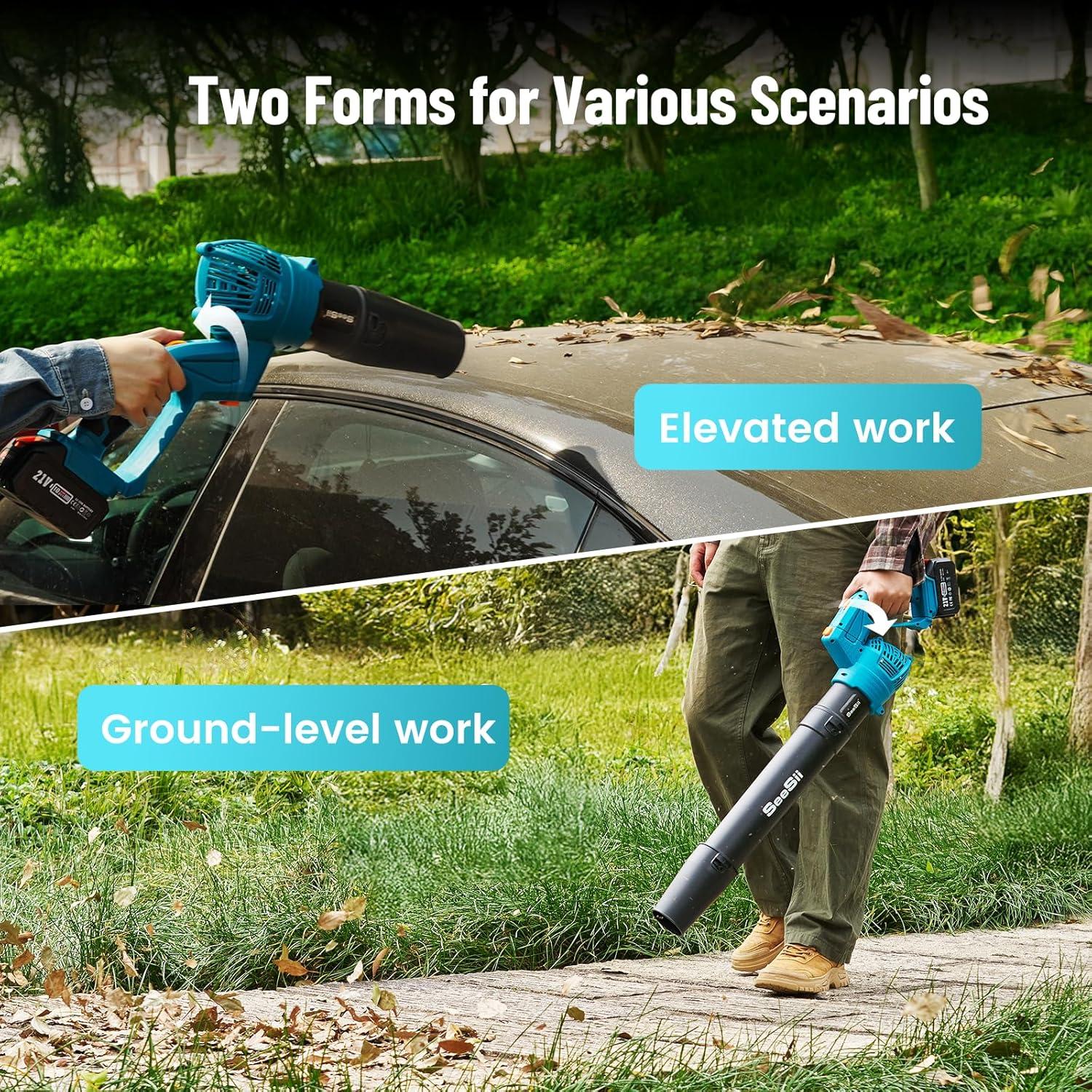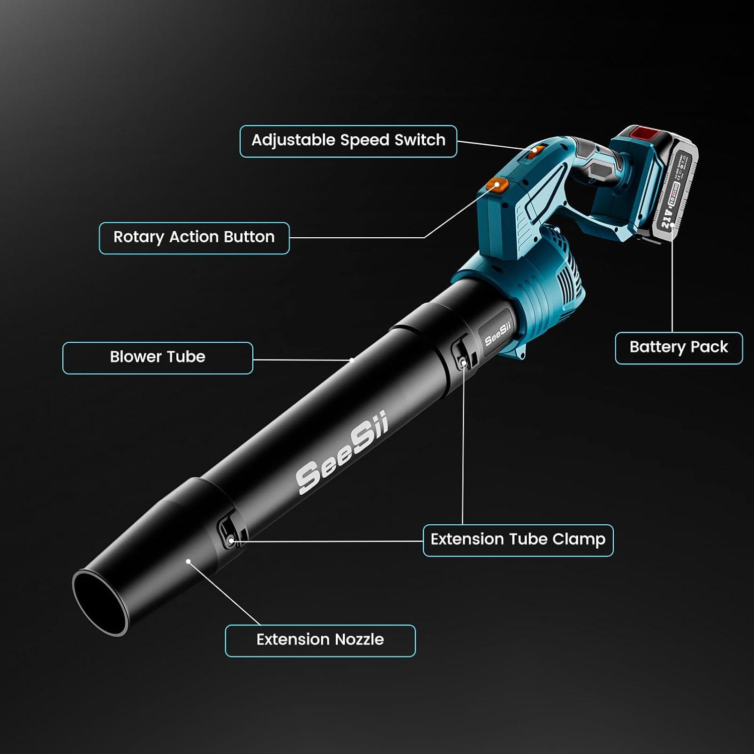 Powerful Turbo Performance: Tackle the toughest yard waste with ease. Driven by advanced turbo technology and an axial fan, the SEESII blower generates a massive 150 MPH wind speed and 550 CFM air volume. It effortlessly clears heavy piles of wet leaves and stubborn debris, completing large-area cleanups in record time.