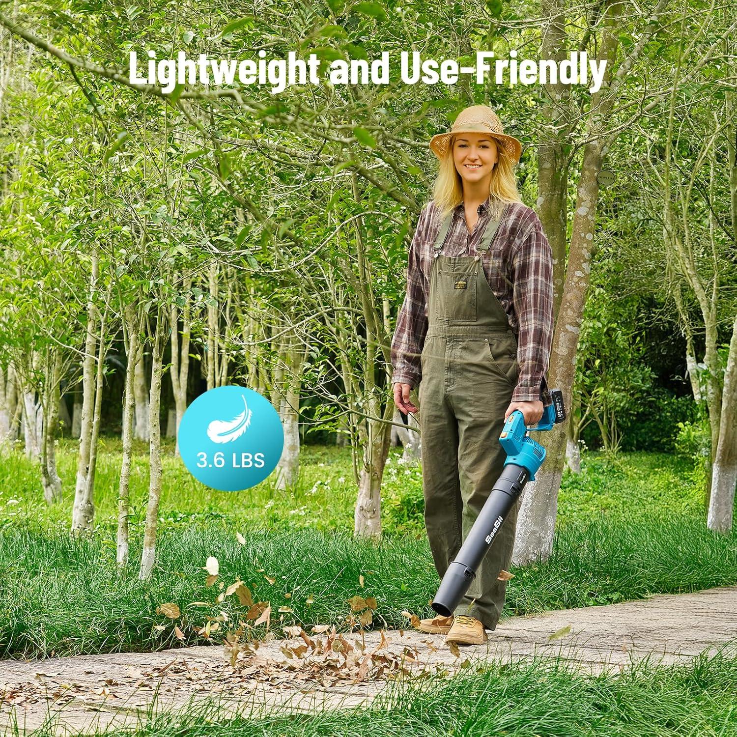 Lightweight & Ergonomic for Easy Use: Experience all-day comfort. Weighing only 3.6 lbs, this electric leaf blower is perfectly balanced for easy one-handed operation. Its ergonomic, anti-slip grip is designed to reduce user fatigue by 30-50%, making lawn care feel less like a chore.