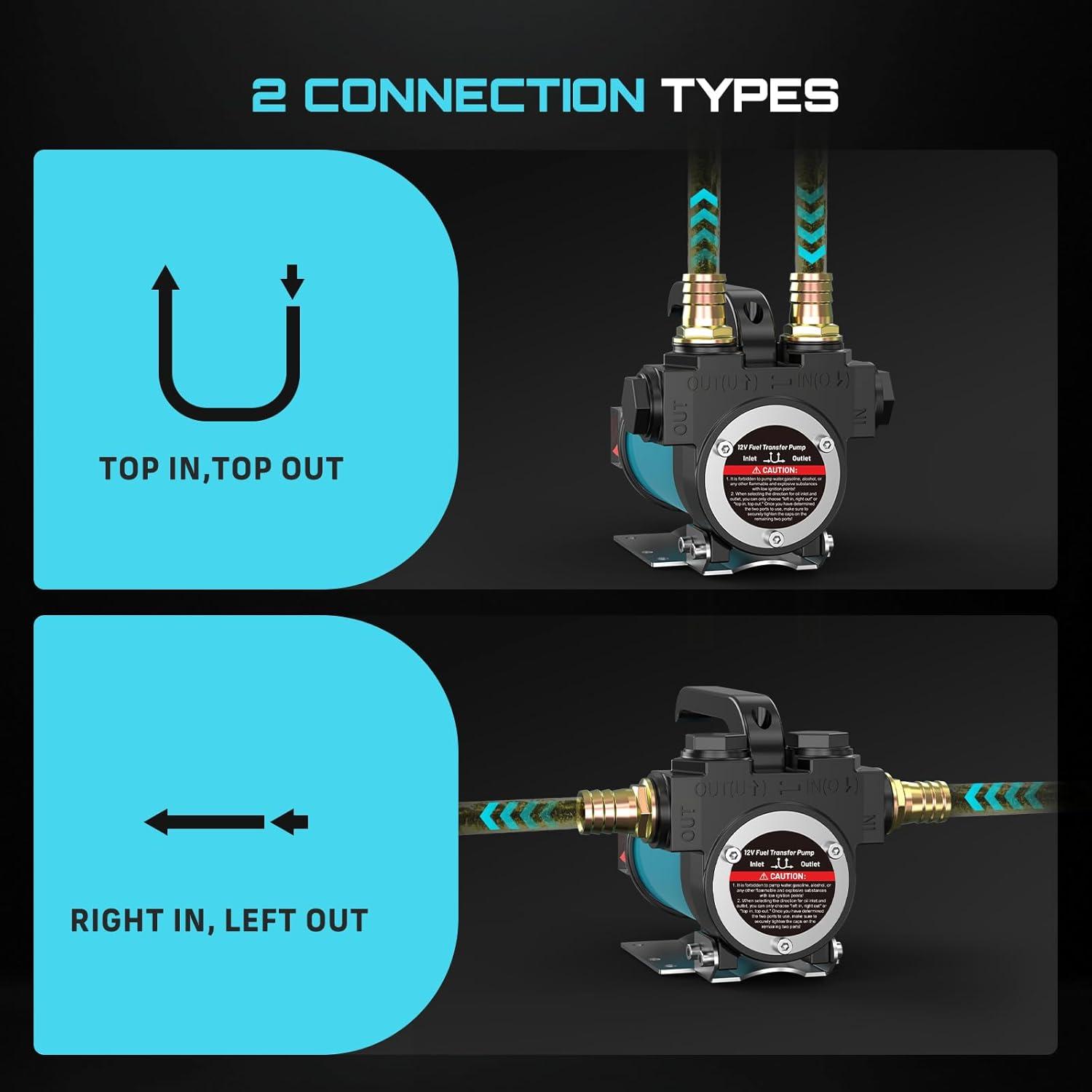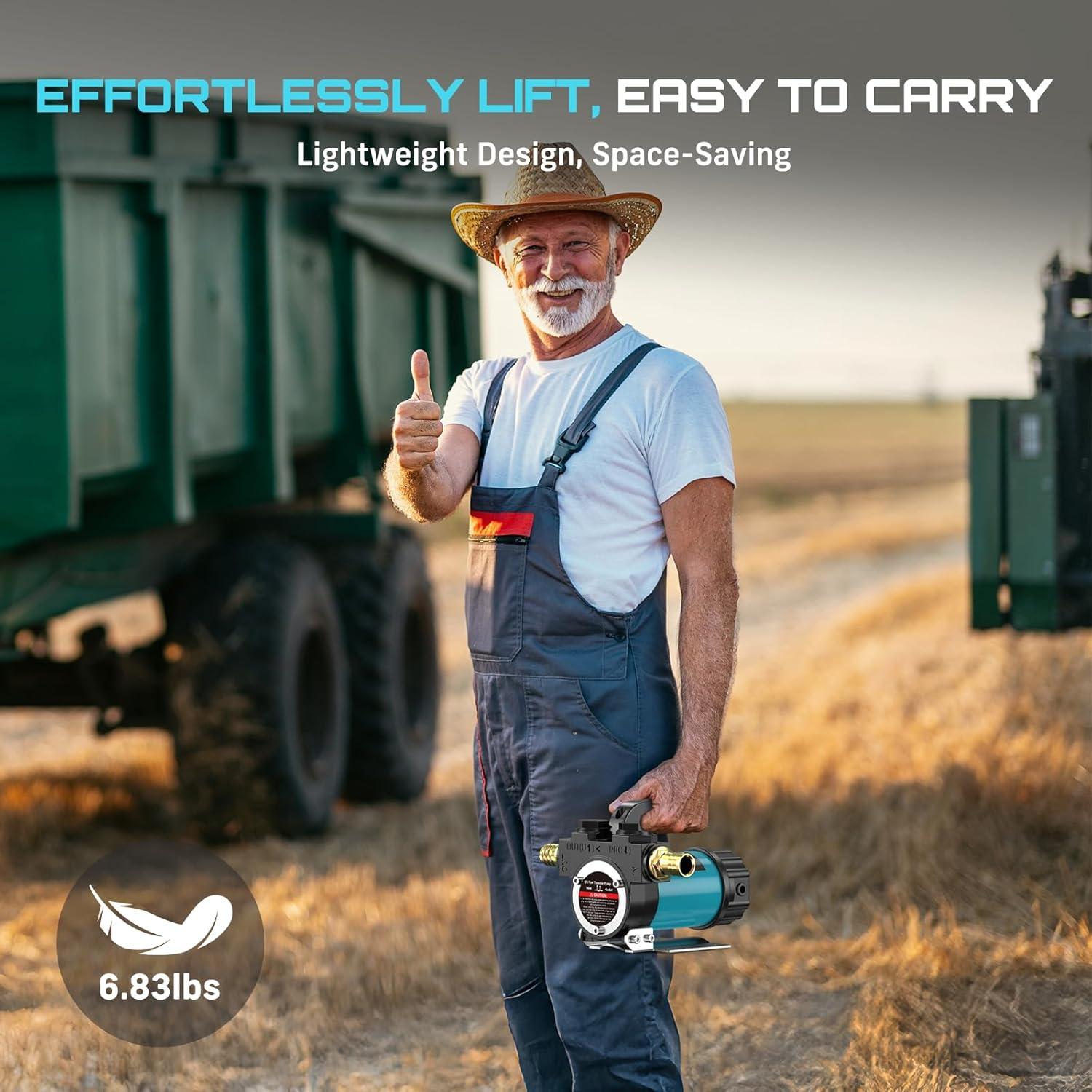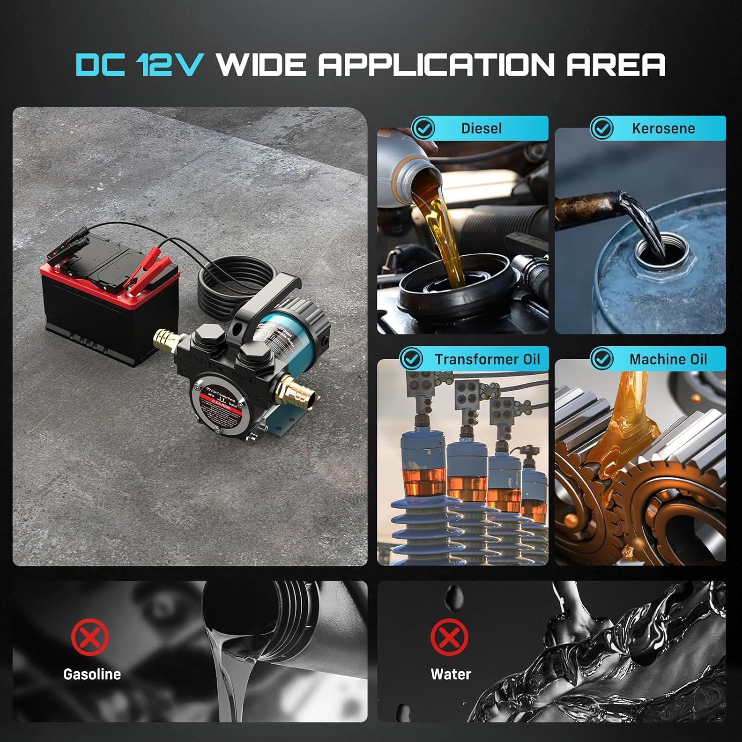 Impressive Suction & Lift Capacity: This portable 12V fuel transfer pump can draw fuel from up to 16 feet away and pump it to heights of up to 33 feet. The diesel pump easily handles long-distance refueling and high-position fuel tanks, making it perfect for agricultural machinery, boats, RVs, and various other applications