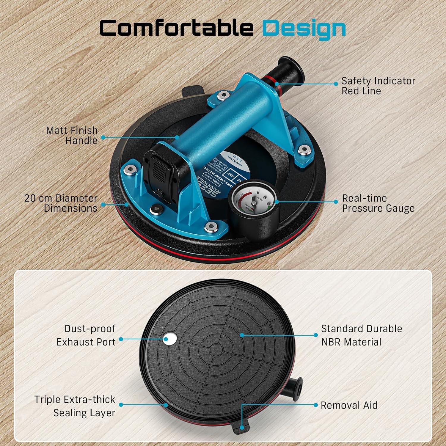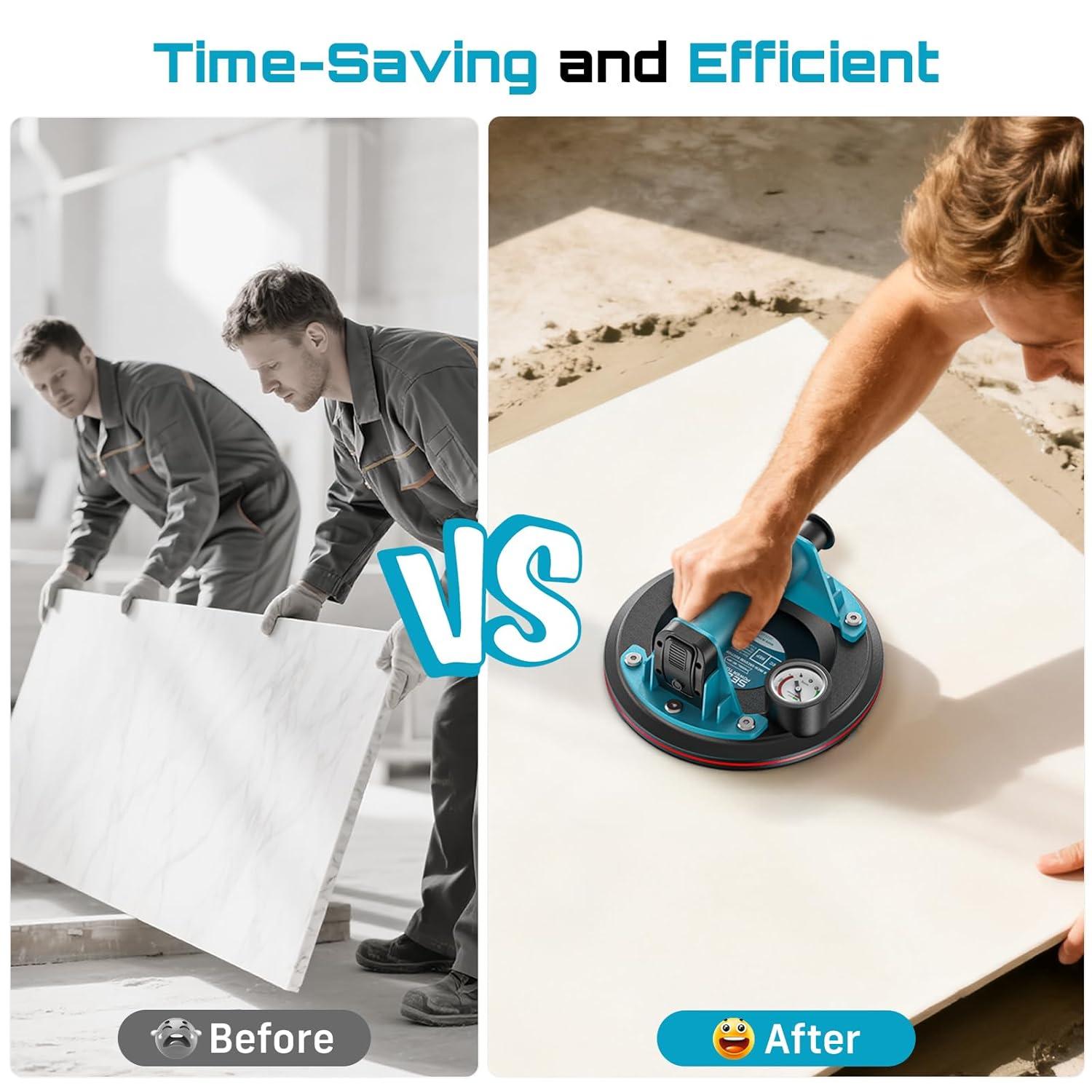 【Why Choose the SEESII Combo Kit? 】:Compared to traditional manual methods, this tile suction cup vibrating tool kit enables you to lift, position, and level tiles effortlessly with strong suction and vibration. Save time, reduce fatigue, and achieve consistently flat, professional results with less rework