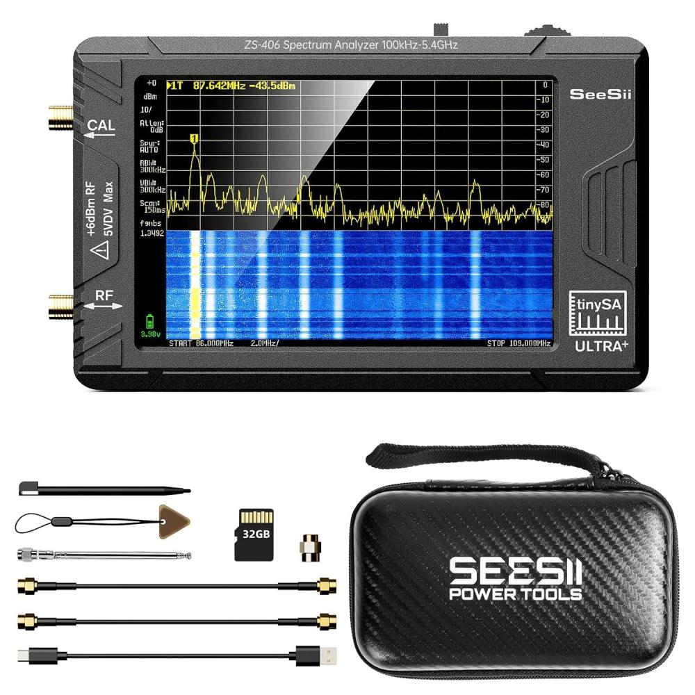 SeeSii Upgraded TinySA Ultra: This New Version V0.4.5.1 Spectrum Analyzer is developed by Hugen, with 4.0 inch 480 x 320 large touchscreen display, 100kHz to 5.3GHz wide measurement range, and includes ZK06-20dB LNA module for enhanced signal detection