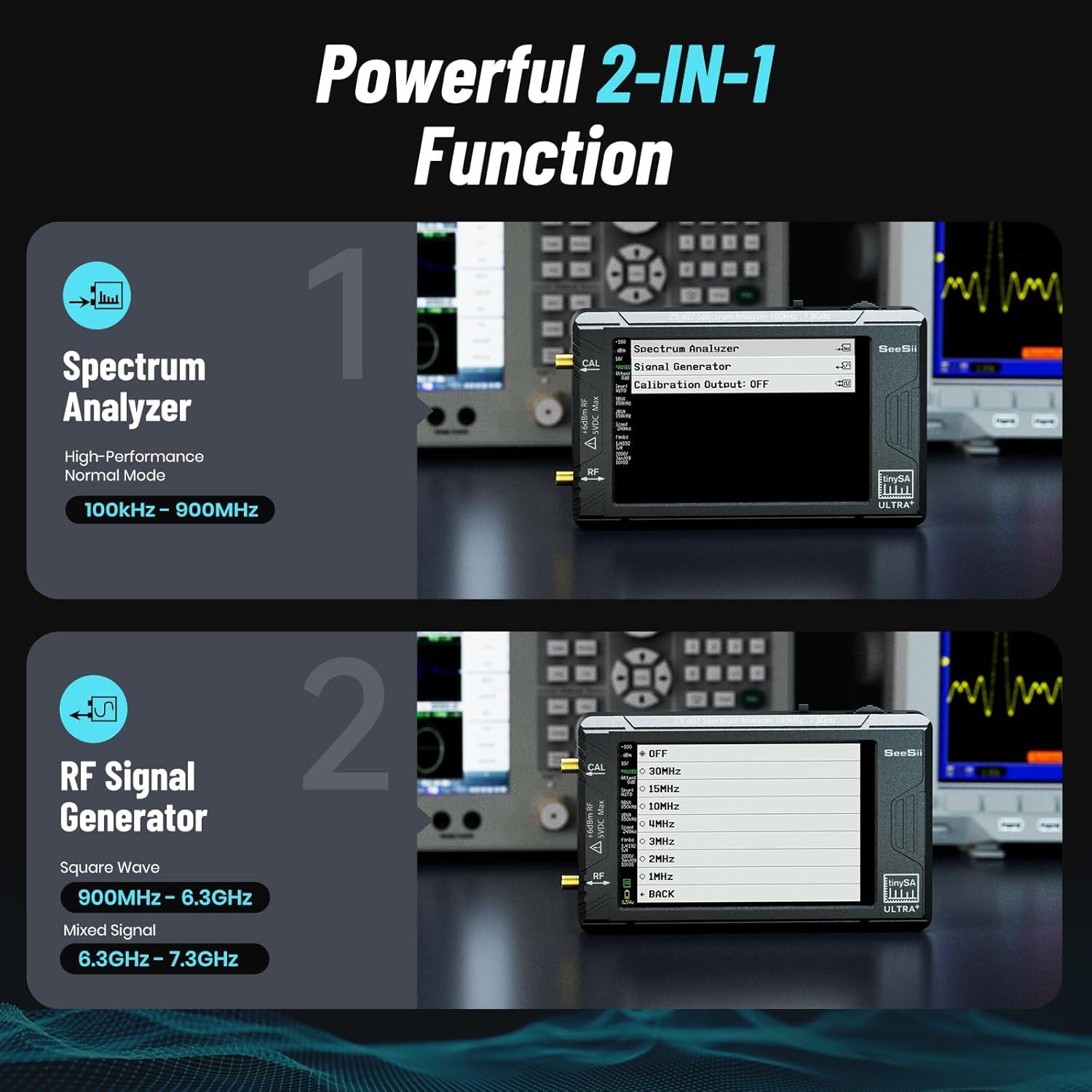 2025 Upgraded Tinysa Ultra+ ZS407 Spectrum Analyzer: Supports an ultra-wide frequency range of 100kHz–7.3GHz, delivering precise test data for RF system development, satellite alignment, and frequency verification. Features a 4.0-inch HD touchscreen (480×320 resolution) with up to 450 scan points for clear visualization of complex spectrum data. The intuitive interface ensures ease of use, while ESD protection and the latest V0.5.4 hardware system provide professional and stable performance.